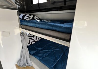 - Two bunks with Mattresses – Top bunk: 80” x 33”, Lower bunk: 80” x 45”