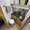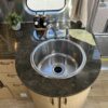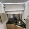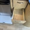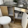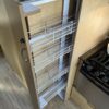 - Kitchen Features – LP 3 Burner Cooktop, Baraldi Cooking Vent with Light, Fire Extinguisher, Laminate Galley Top, Stainless Steel Sink with Cutting Board Sink Cover, Custom Handcrafted Flatware Organizer