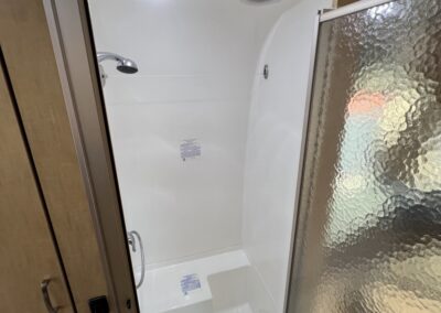 - Bathroom Features – Removable Hand Held Shower Head with Shutoff, China Toilet, Retractable Clothes Line in Shower, Lavy Sink, Roof Vent/Fan