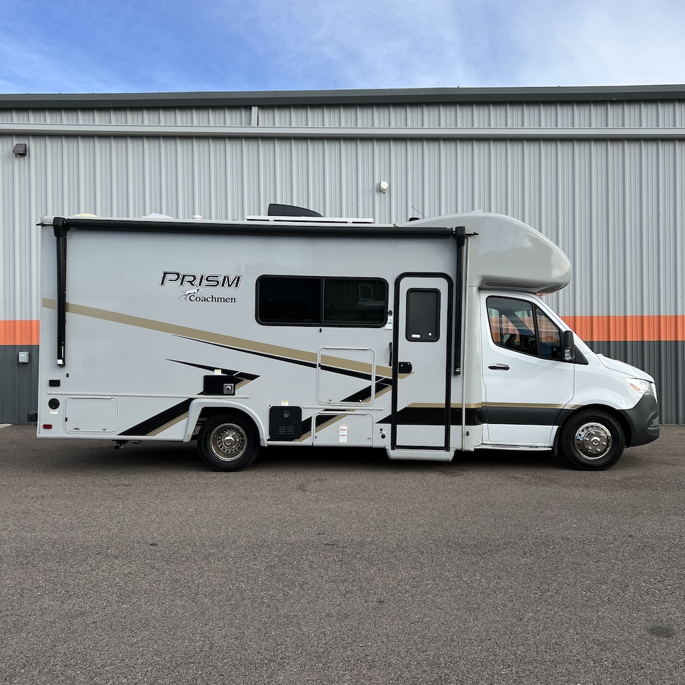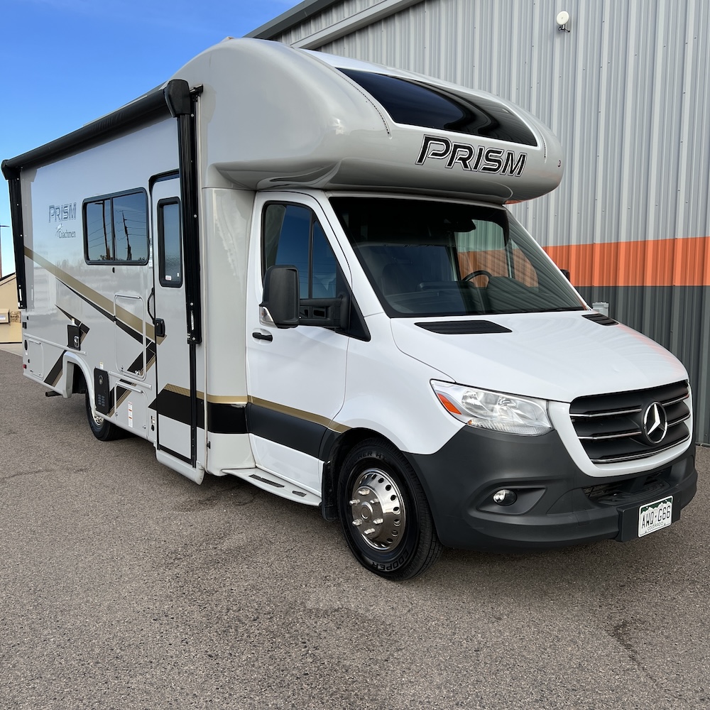 Stop compromising between luxury, maneuverability, and fuel economy. The 2024 Coachmen Prism 24FS is built on the legendary Mercedes-Benz Sprinter 3500 Chassis and powered by the efficient 3.0L V6 Turbo Diesel engine, making it a dream to drive on highways, mountains, and in city traffic. At just under 25 feet, it’s the perfect size for national parks and effortless parking. If you haven’t driven one of these yet, you should come in and test drive!
