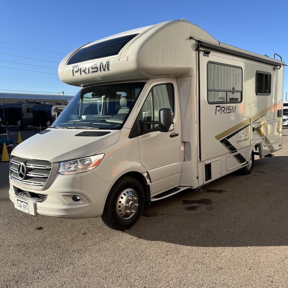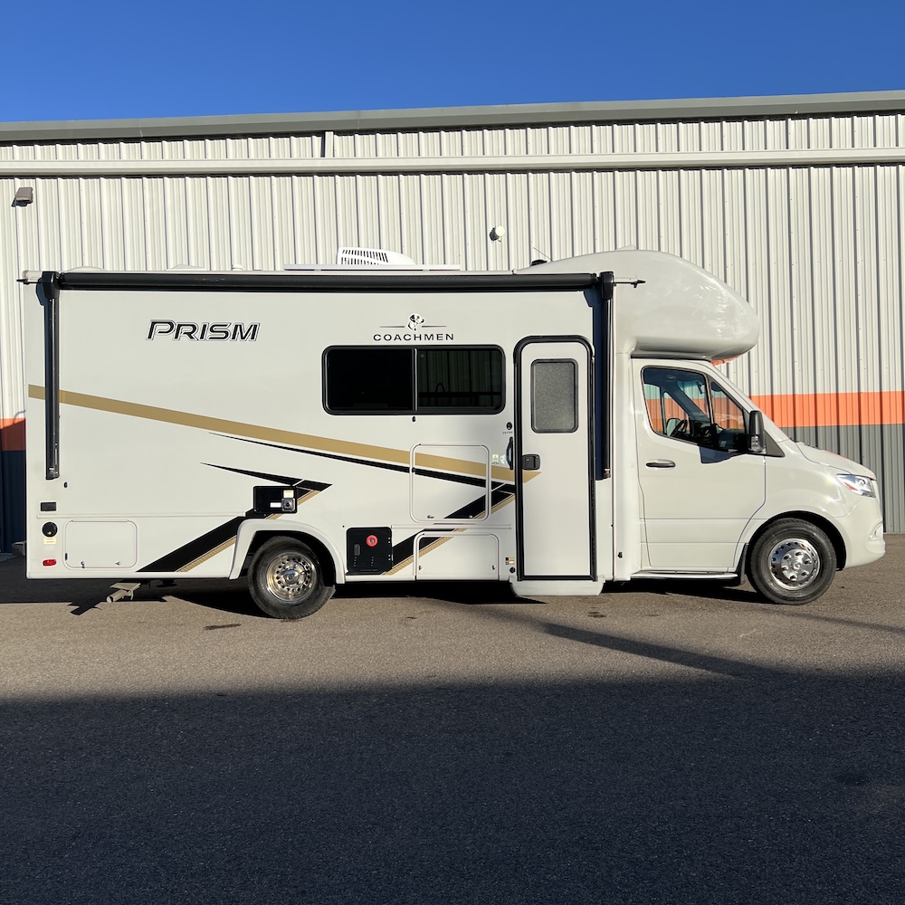Step into the future of travel with the 2026 Coachmen Prism 24FS, where premium Mercedes-Benz engineering meets Coachmen’s signature comfort and craftsmanship. This Class C motorhome blends efficiency, performance, and upscale living—perfect for weekend escapes or cross-country touring. The Mercedes-Benz Sprinter 3500 Chassis is smooth, powerful, and fuel-efficient (yes a motorhome that is fuel-efficient does exist!).