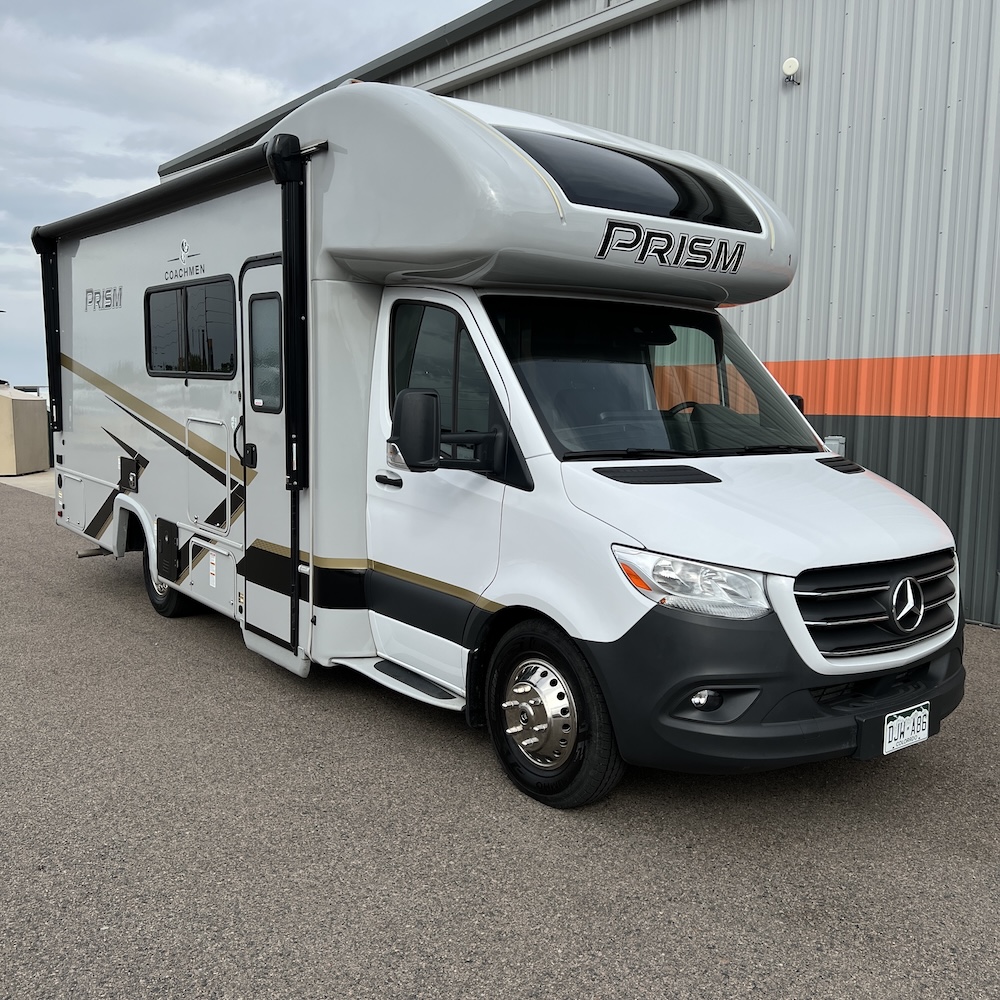 The 2026 Coachmen Prism 24FS is a luxurious, easy-to-drive, multi-use touring vehicle that provides unique styling and amenities. From the interior’s solid surface countertops, soft touch ceiling, residential flooring, and versatile interior storage to the exterior’s LED running lights, tinted windows, and aerodynamic, stylish full fiberglass cap, Prism is ideal for short or long trips.