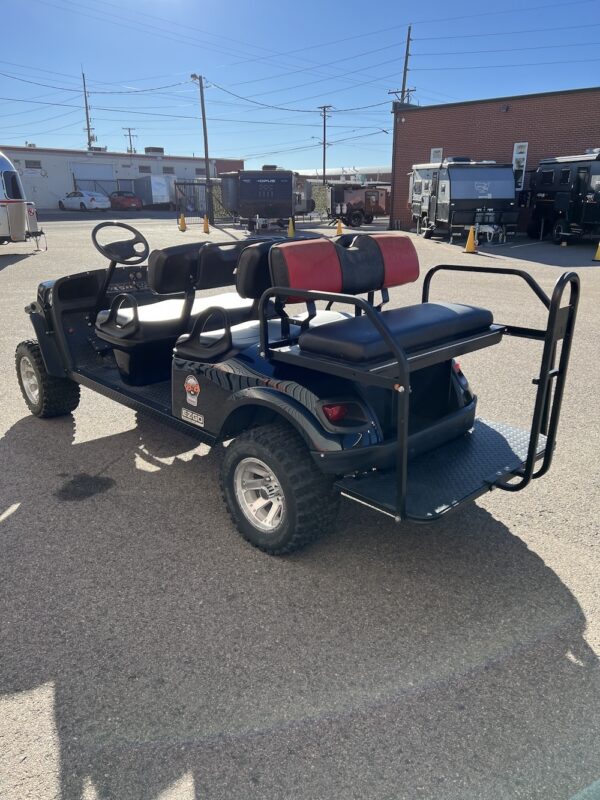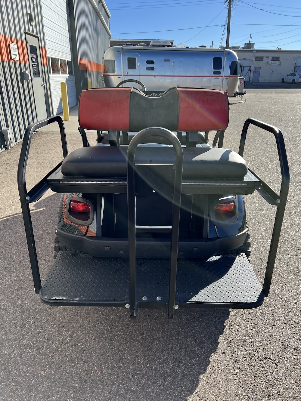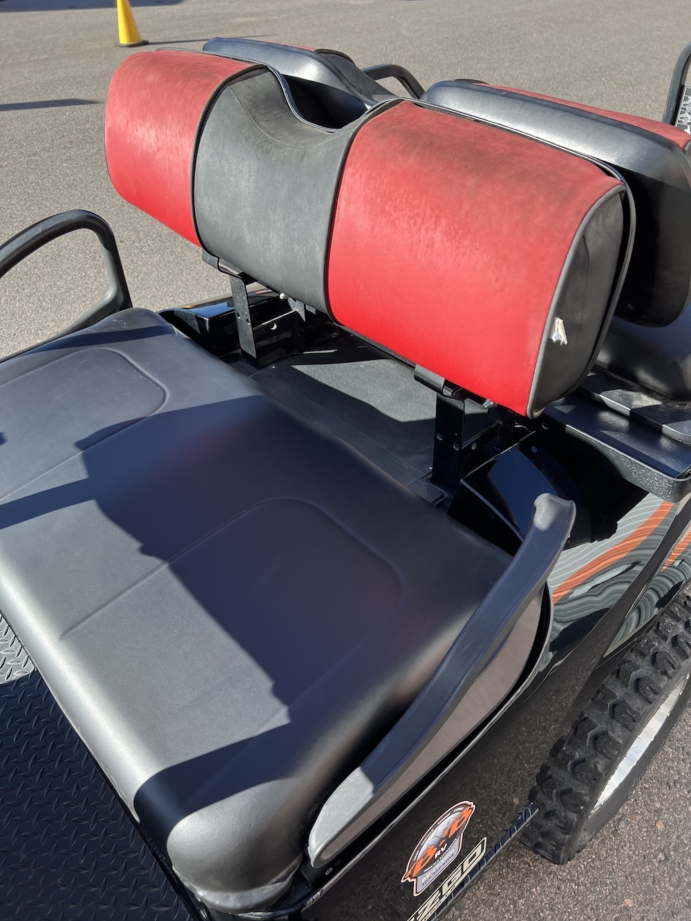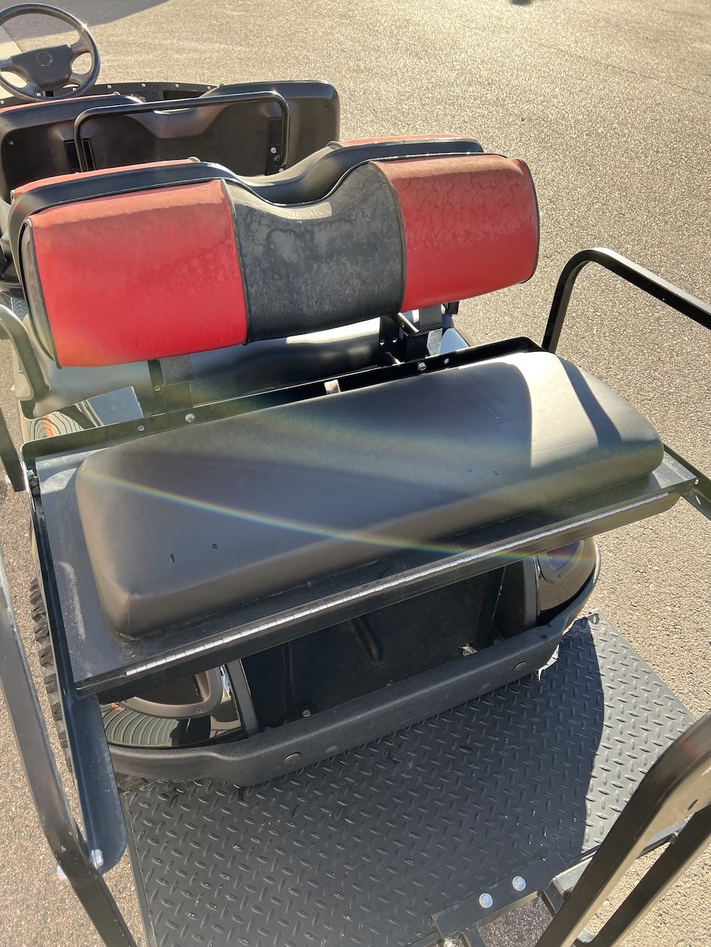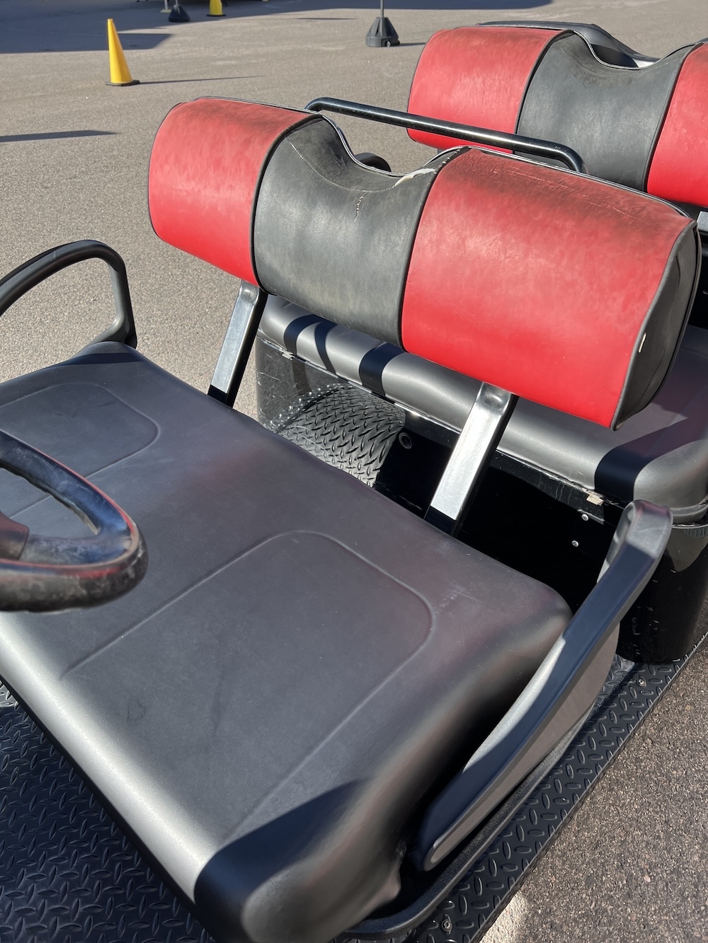 6 seater golf cart with rear cargo deck and new seat bottom cushions.