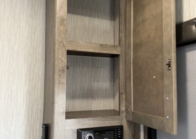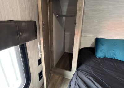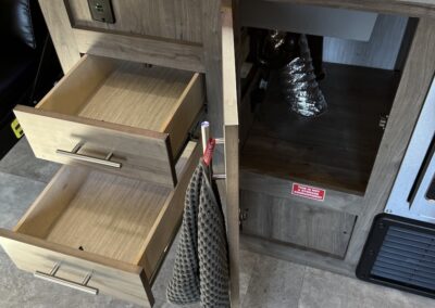 Think spacious garage for all your gear, plus queen-size fixed bed for post-adventure naps, and an electric Happi-jac power bed for extra sleeping space or storage – versatility at its finest! The massive 94-gallon fresh tank keeps the fun going.
