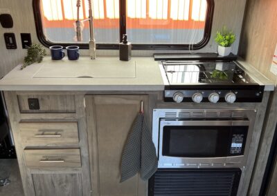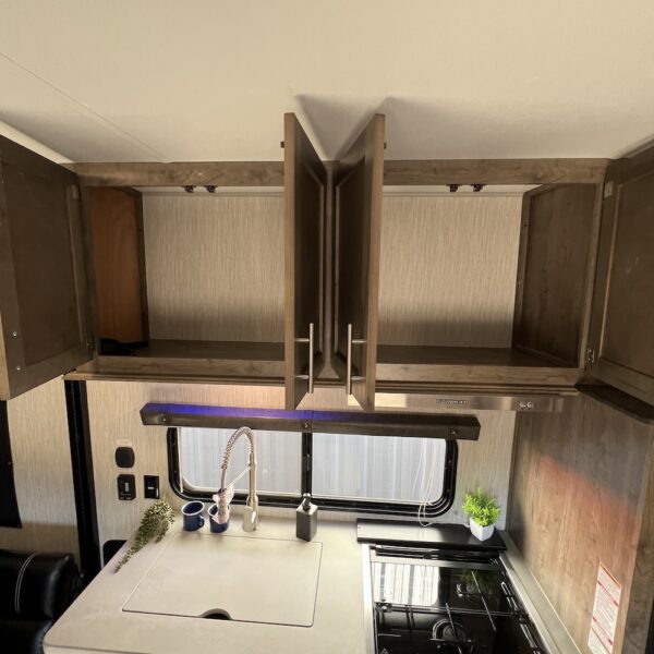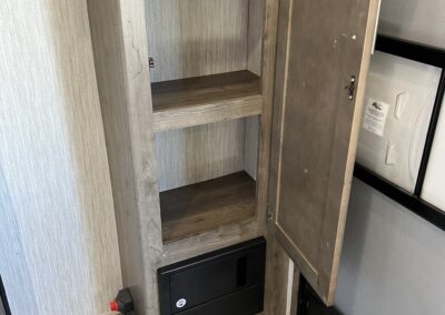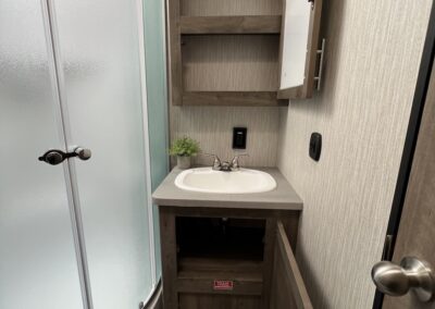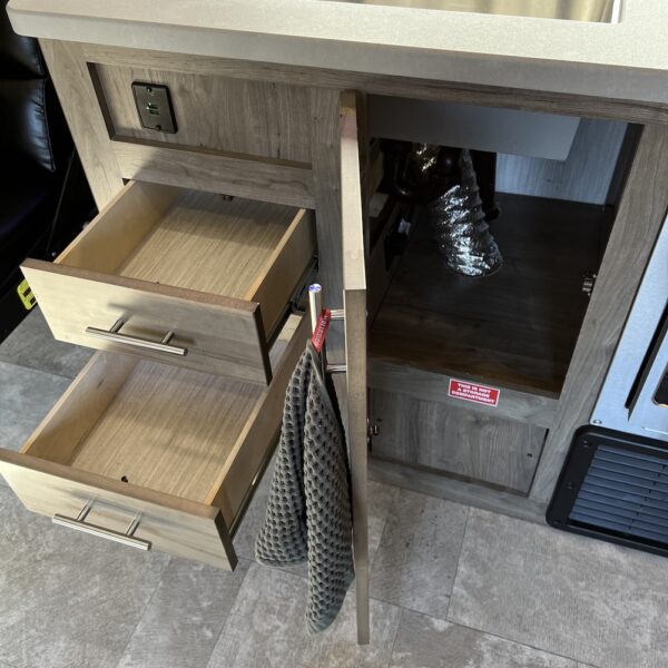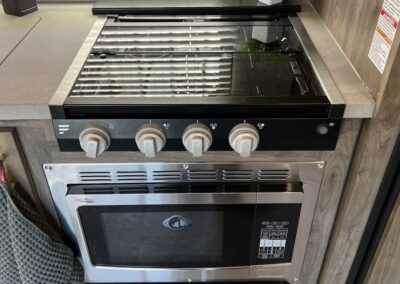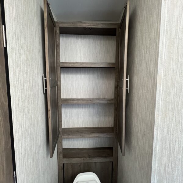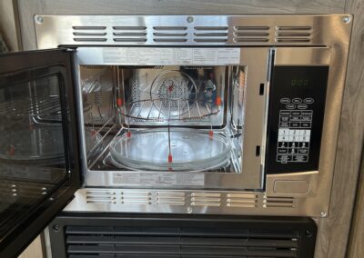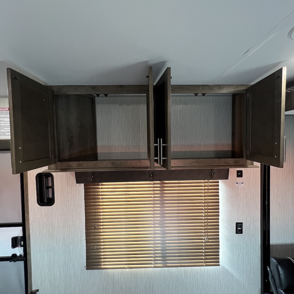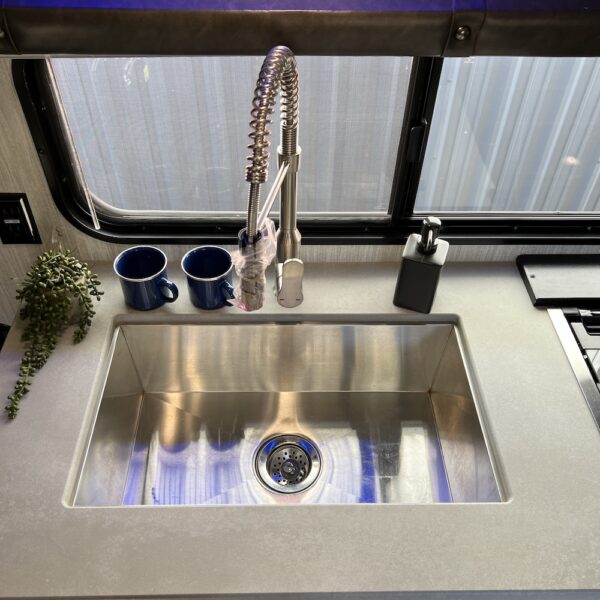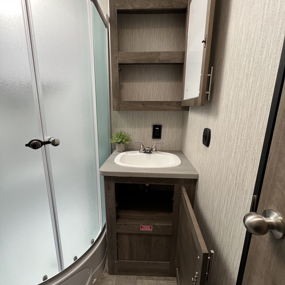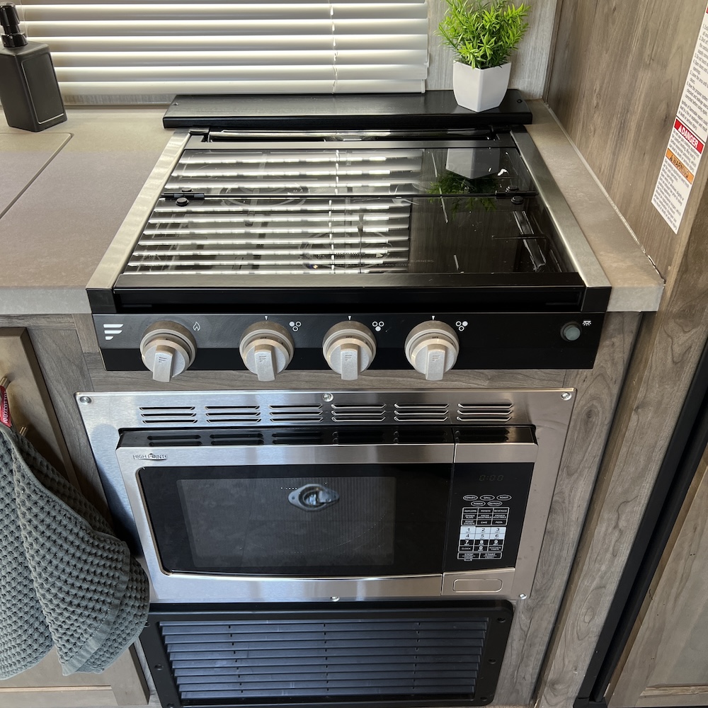 But that’s not all! This bad boy comes ready for off-the-grid adventures with features like a 30-gallon fuel station, 4kw generator, and 6-point automatic leveling system to ensure a perfectly comfy camp, no matter the terrain. Plus, a ramp door patio system with railings and screens lets you seamlessly expand your living space and enjoy the outdoors under a star-studded sky.