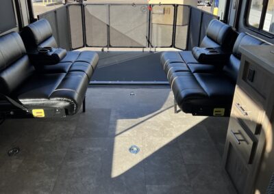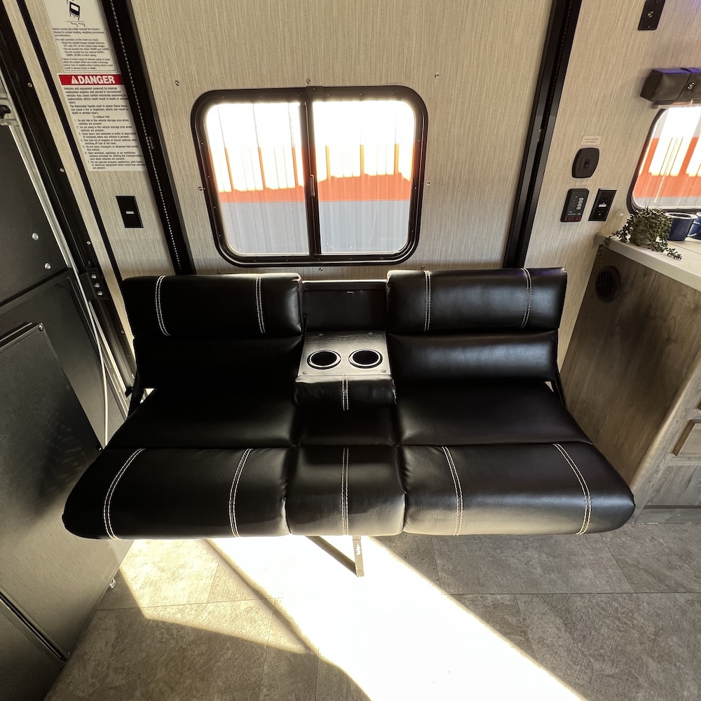- Dual Rear Sofas that Convert to Sleeping Area Under Happi-Jac Bed