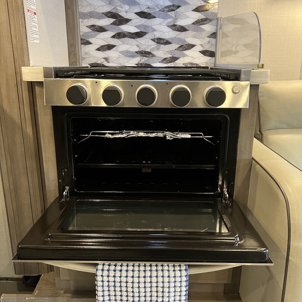 - Oven with 3-burner range and vent hood
