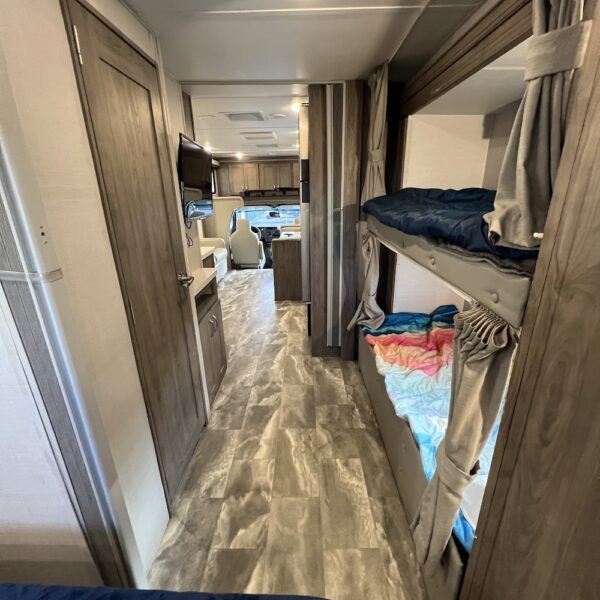 Tired of Cramped Campers? Unlock the Open Road with Room for the Whole Crew! Introducing the ultimate family motorhome: the 2024 Gulf Stream Conquest Class C 63111. Designed with family adventures in mind, this bunkhouse model ensures everyone has their own comfortable space, making road trips a dream come true. Features include full wall wardrobe in separate bedroom area, full bath, full kitchen, 2 twin bunks and more.