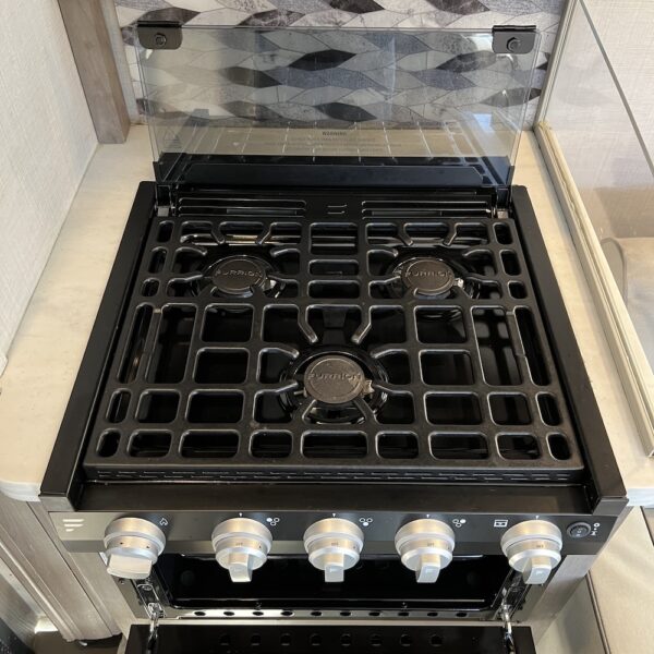 - Oven with 3-burner range and vent hood