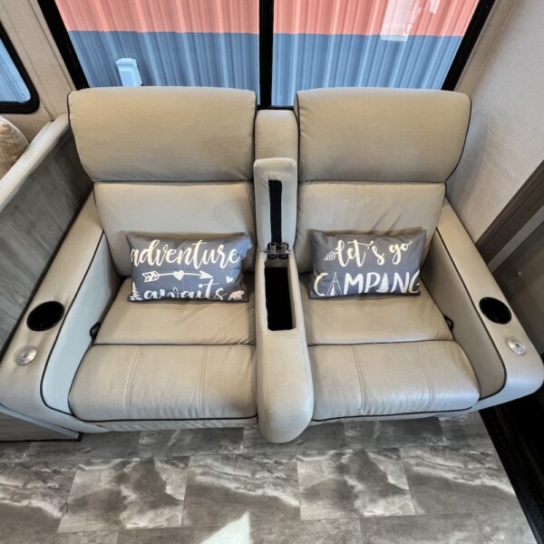 This upgraded Gulf stream Conquest has a large living and dining area with leather recliner seats. The split bath sets it apart from other large Class C floorplans.