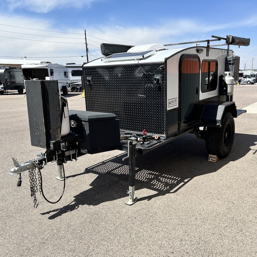 The 2022 Hiker Extreme Off-Road 5×9 is a compact adventure trailer built for rugged travel and easy towing. Its durable off-road construction and lightweight design make it a great match for SUVs and smaller trucks while still giving you a comfortable basecamp wherever you roam. This unit is equipped with several upgrades to support off-grid camping, including a solar setup and 600W inverter to power small electronics and essentials while off the grid. The roof rack provides extra gear storage, and the 270° awning quickly creates a large shaded area around the trailer for relaxing or cooking at camp.