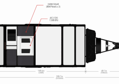With the 3 x 80W solar panels installed on the roof and lithium power storage, you can reduce your time spent connected to the grid.