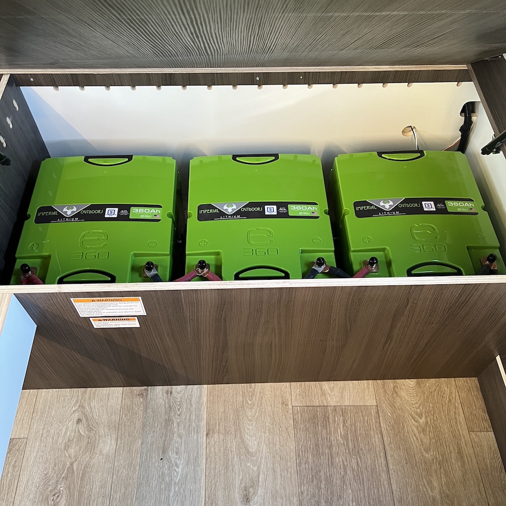 - 1080Ah: (3) 360Ah Lithium Batteries