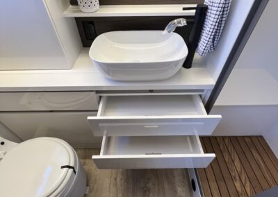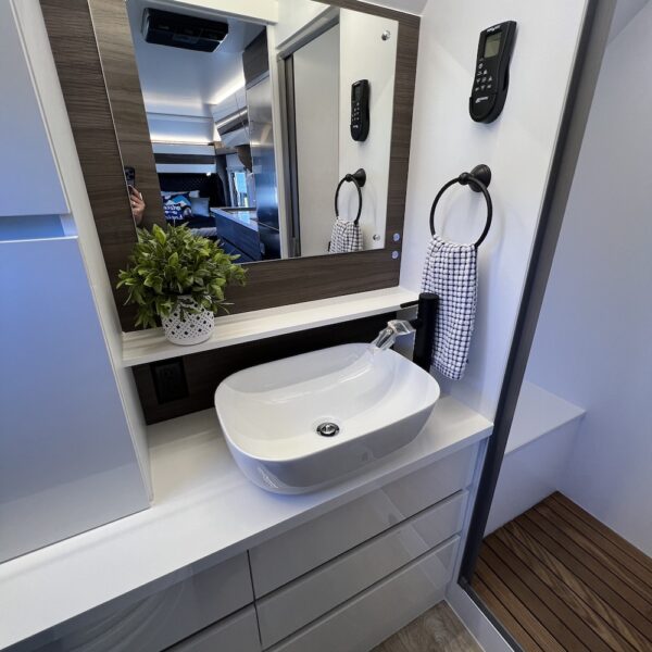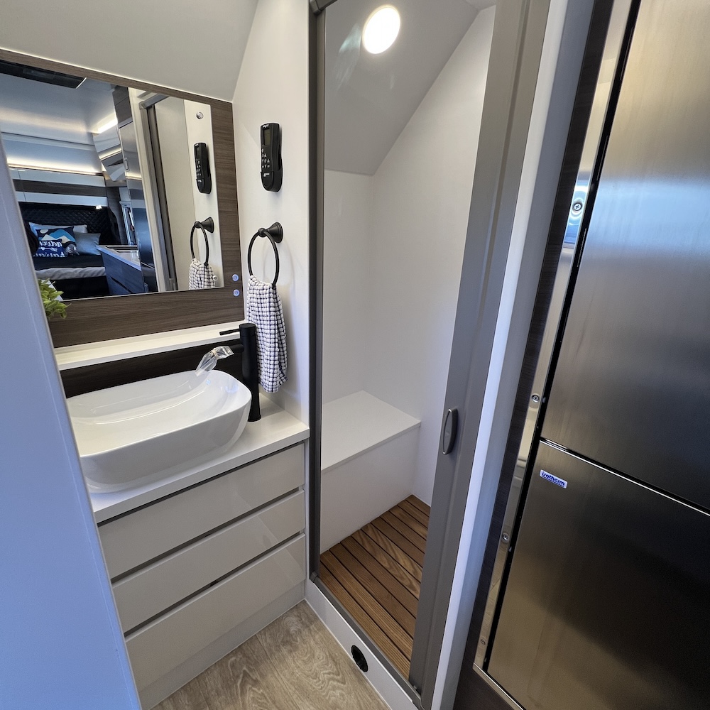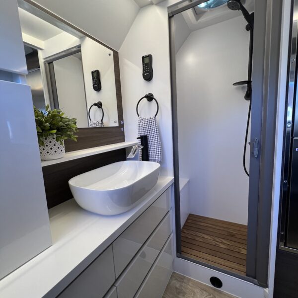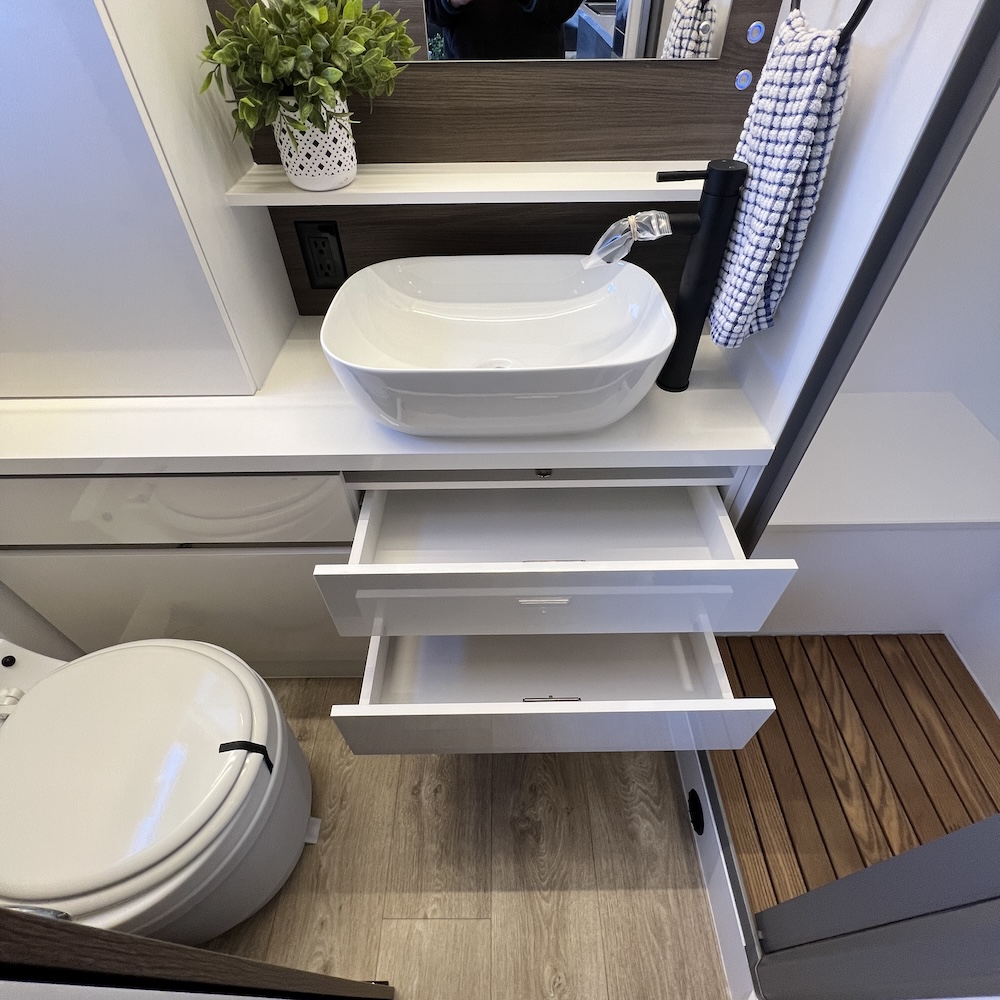 - Full Bathroom w/ Shower and Dry Flush Toilet – (no black water tank to deal with in the back-country)