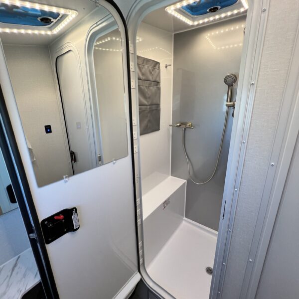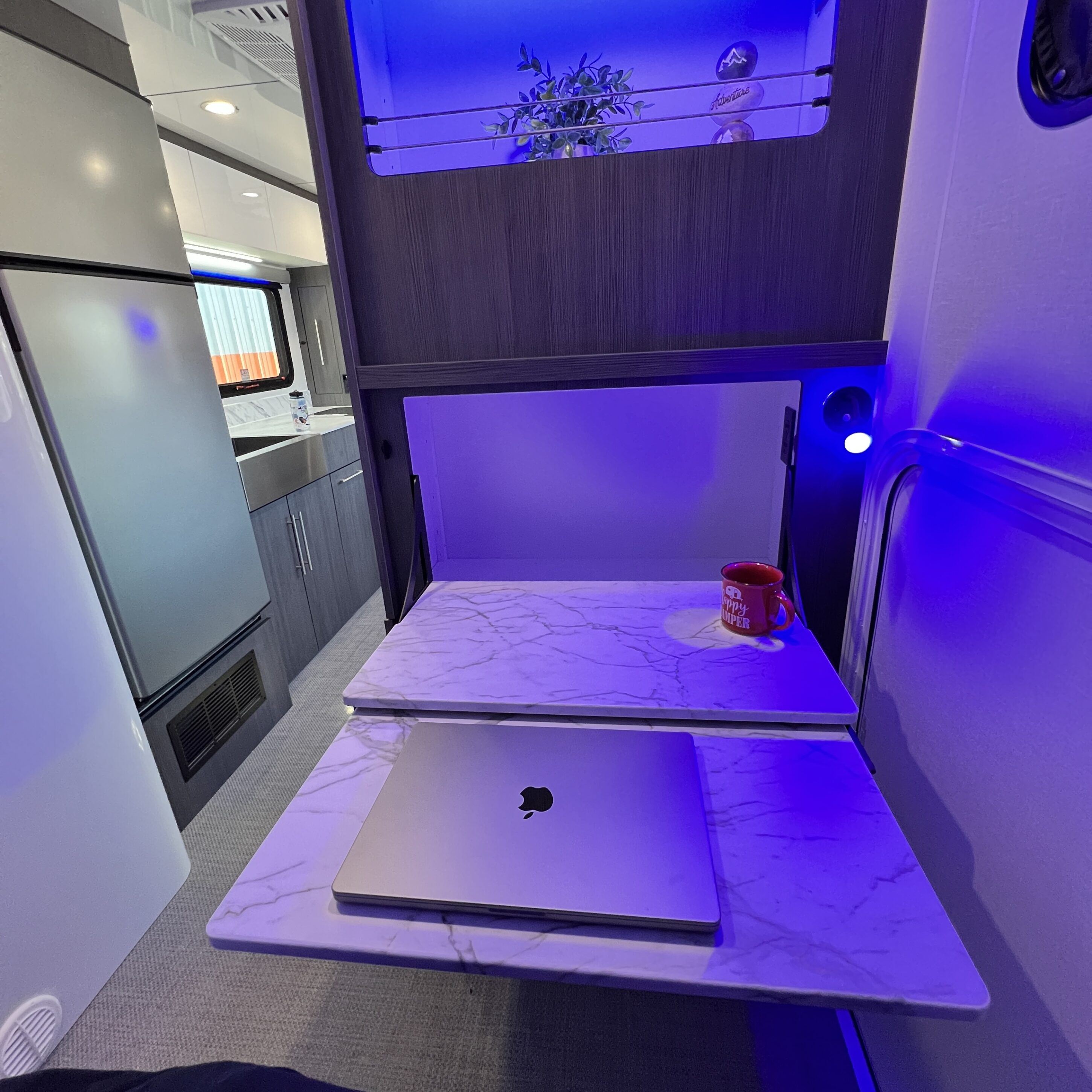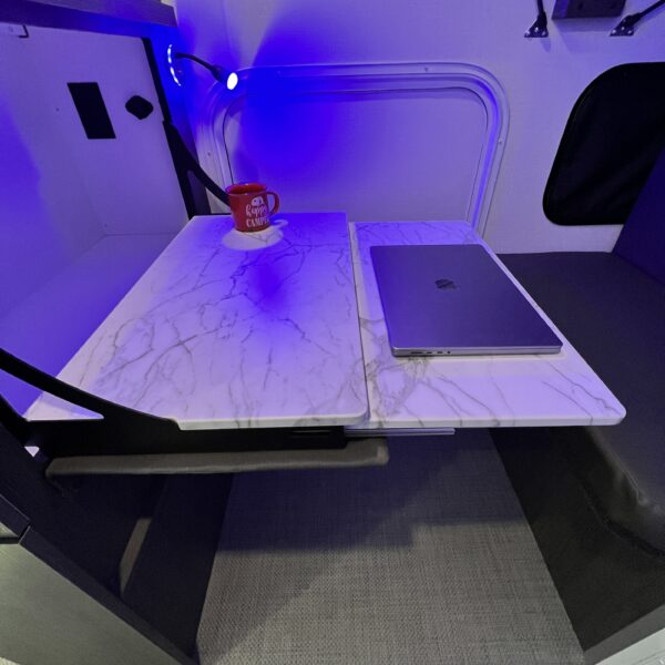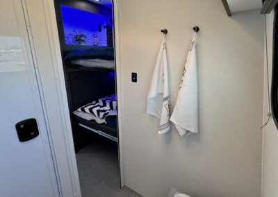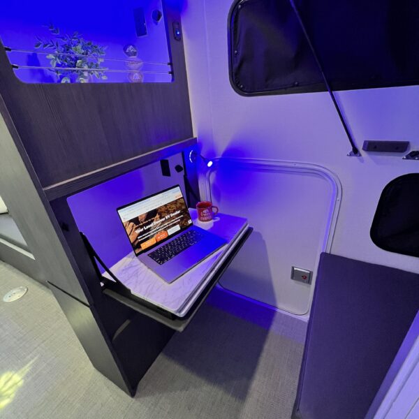 The 2026 inTech Aucta Sycamore comes standard with extra ground clearance, all-terrain tires and blacked out wheels. The interior features a transformational bunk area that easily converts into an office space, offering unmatched flexibility for family travel or work on the road. Imagine the possibilities: a dedicated workspace during the day, seamlessly transforming into a comfortable bunk area for the kids at night. This innovative design maximizes the use of space, ensuring that every inch of your RV is optimized for your needs. It truly adapts to your ever-changing lifestyle. Whether it’s sleeping, working, or storing your essentials, this RV redefines family-friendly, multi-purpose travel.