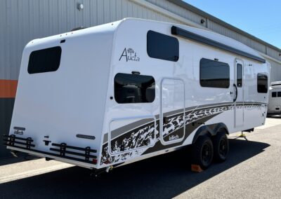 The ALL NEW Aucta Sycamore is now in stock and has sleeping for up to 6 with a bunk area that transforms to a home office space.