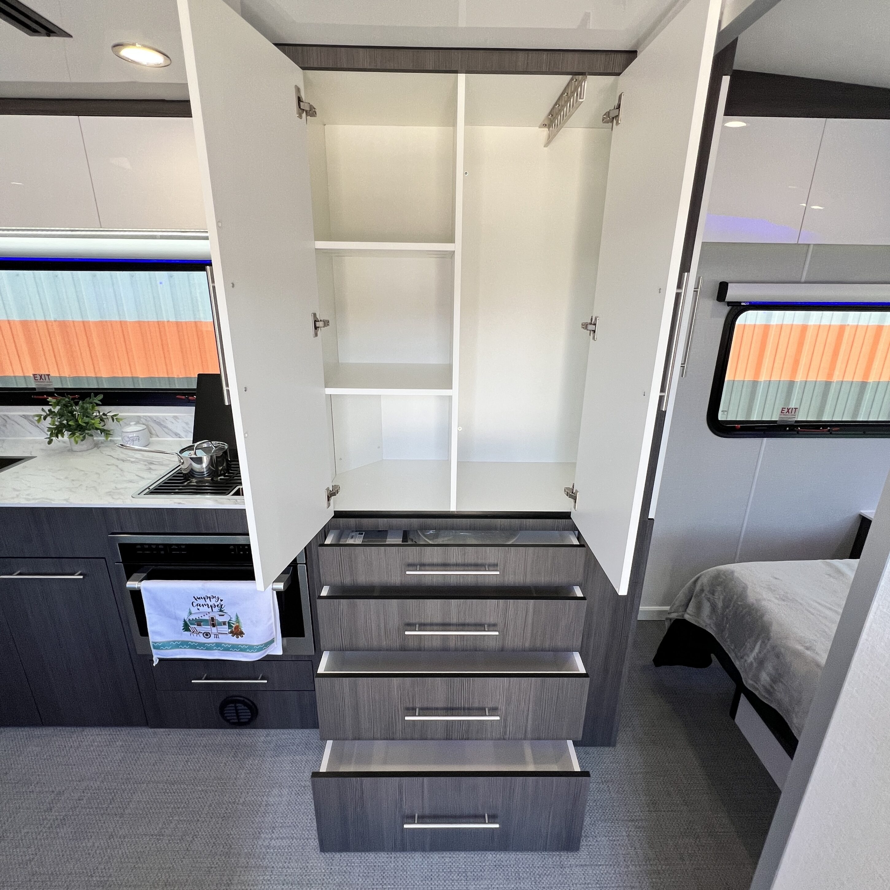 - Slide-out 40″ TV Over Kitchen
