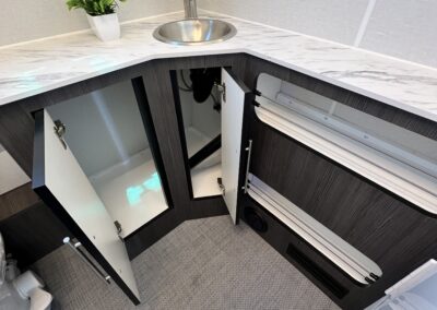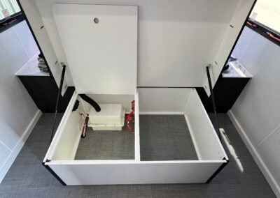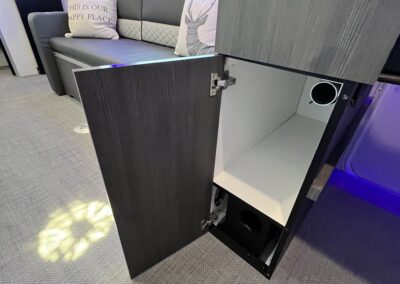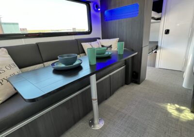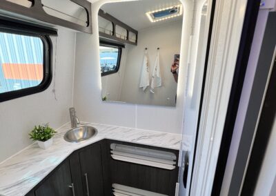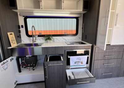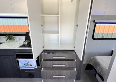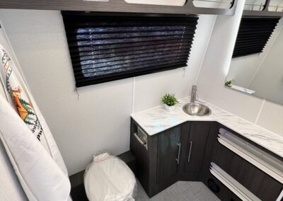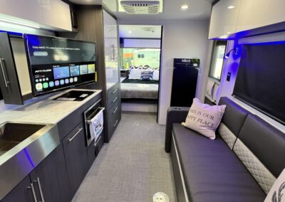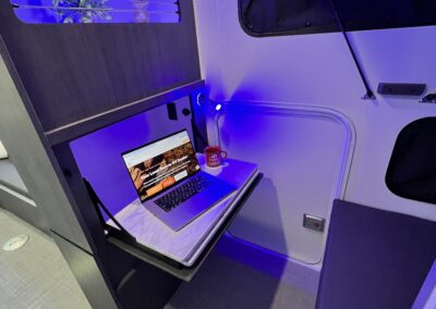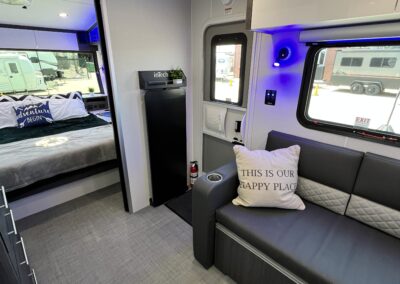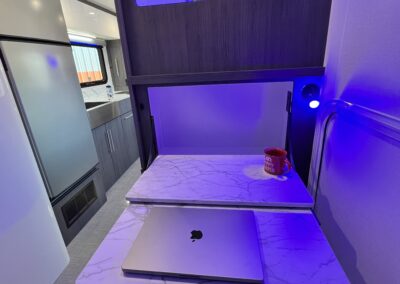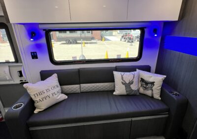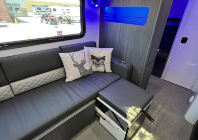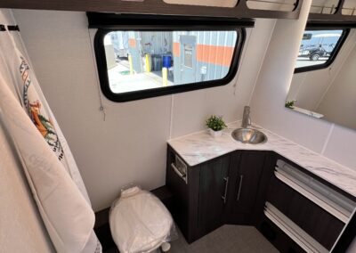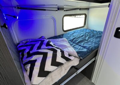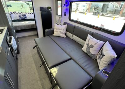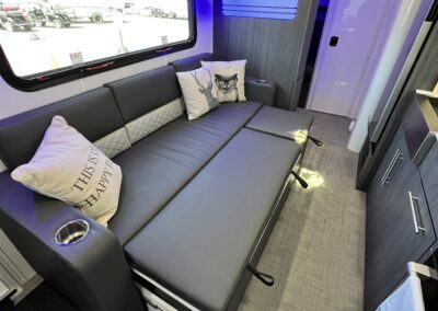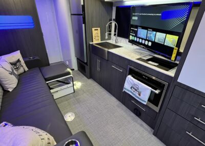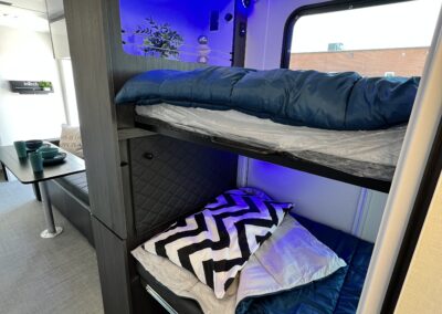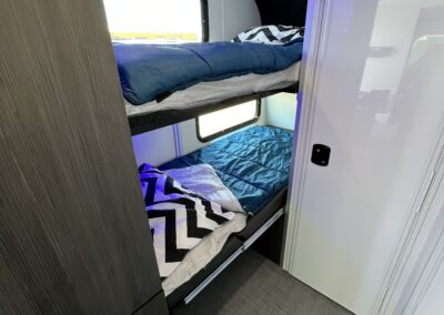 Imagine the possibilities: a dedicated workspace during the day, seamlessly transforming into a comfortable bunk area for the kids at night. This innovative design maximizes the use of space, ensuring that every inch of your RV is optimized for your needs. It truly adapts to your ever-changing lifestyle. Whether it’s sleeping, working, or storing your essentials, this RV redefines family-friendly, multi-purpose travel.