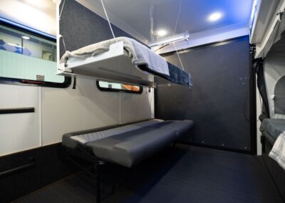 - Driver’s side tip-out bed – 46”x81” Mattress