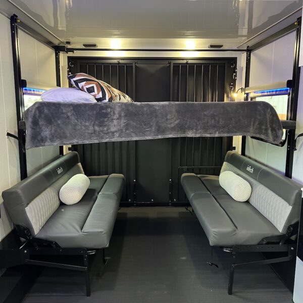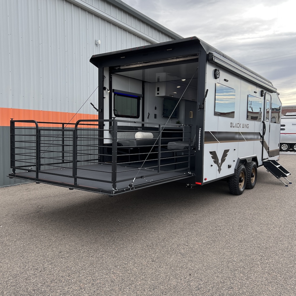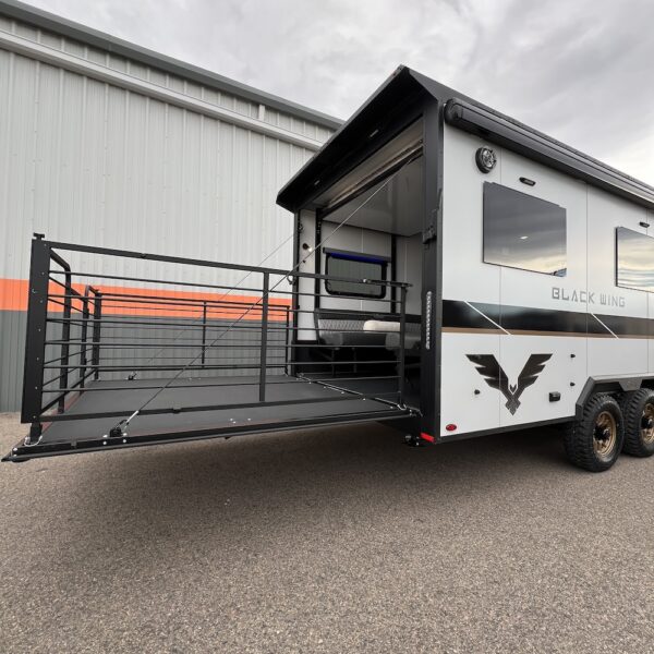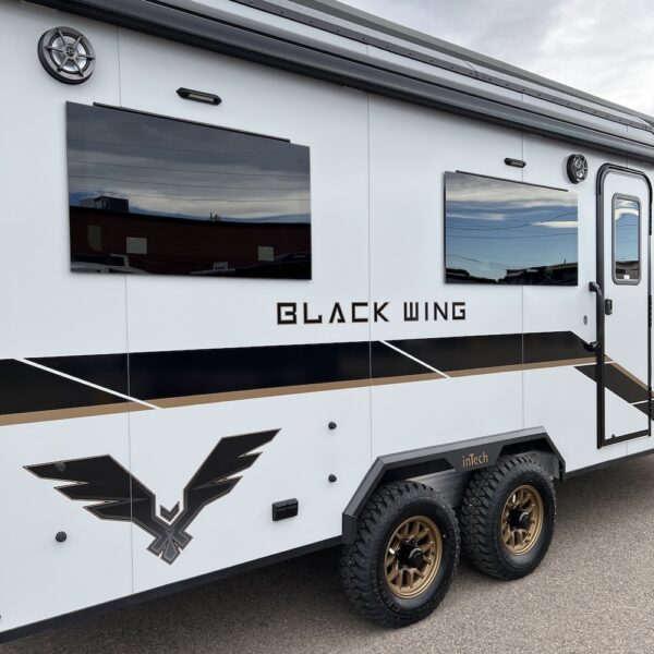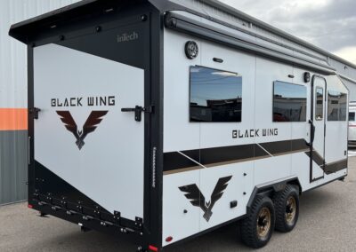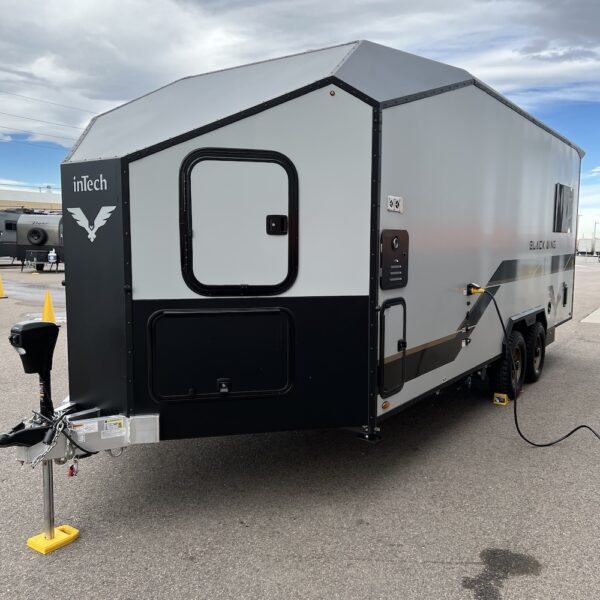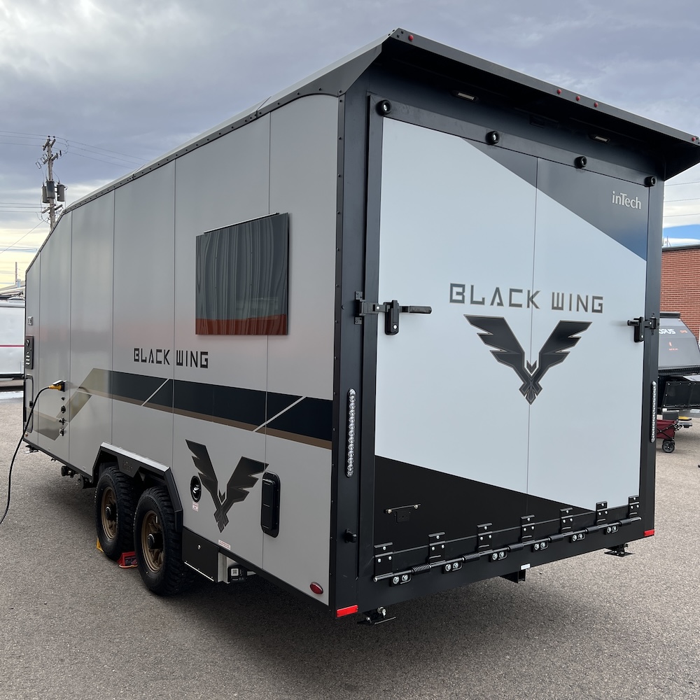 Turn heads at the track, campground, or trailhead with the inTech Black Wing 826-X Toy Hauler—a trailer built for those who demand strength, style, and smart design in every mile. Inside, the 826-X is engineered for versatility. The open, functional cargo area easily transforms from a secure hauler for motorcycles, ATVs, or side-by-sides into a comfortable living space for weekends at the track or off-grid adventures. Built for serious use, the Black Wing 826-X features rugged components, reinforced construction, and race-inspired styling that reflects inTech’s roots in high-performance manufacturing. Whether you’re hauling toys, tools, or gear for the next adventure, this trailer is designed to perform with confidence and look good doing it.