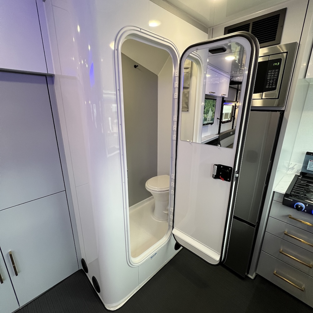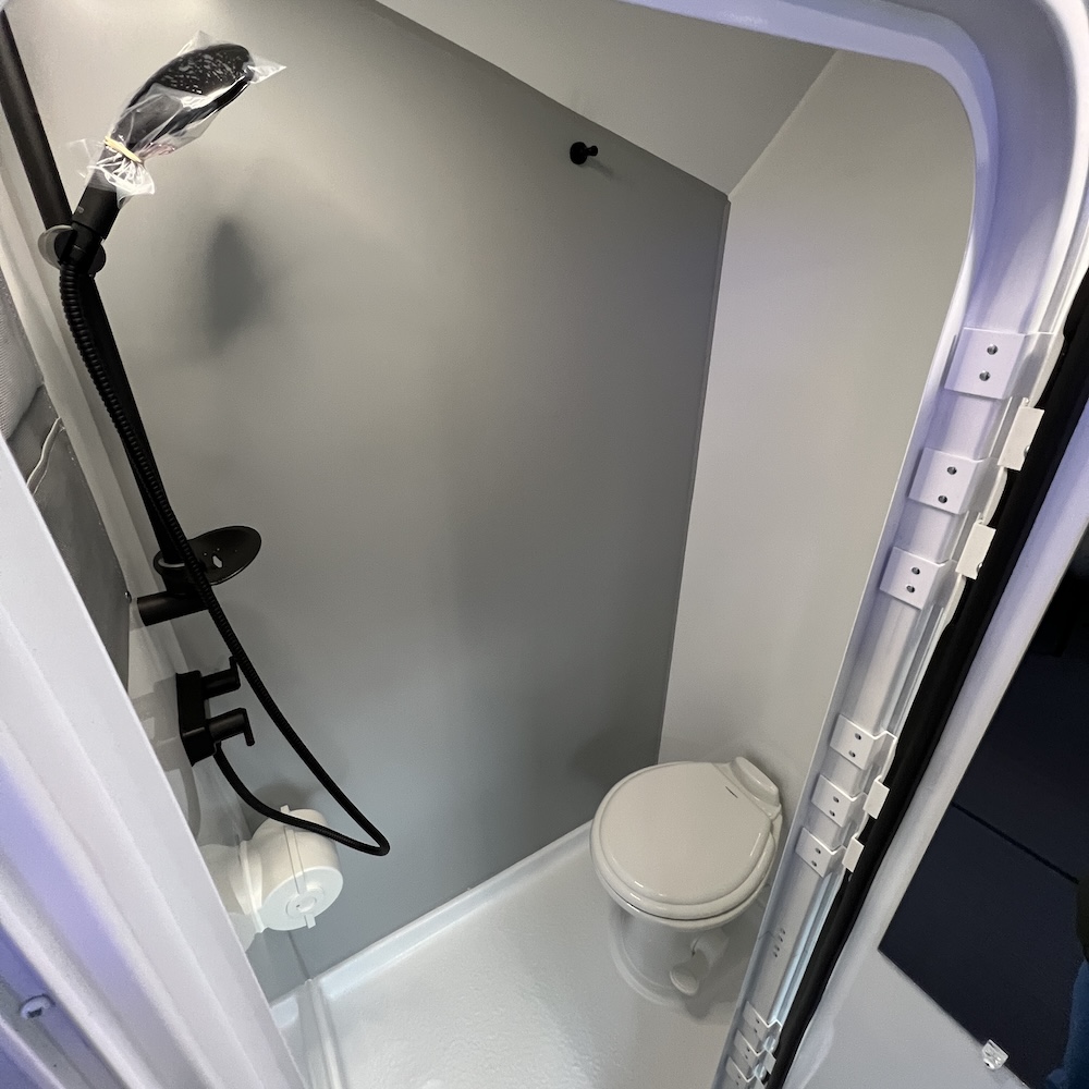 - Wet Bath w/ Porcelain Toilet and Adjustable Height Shower Wand