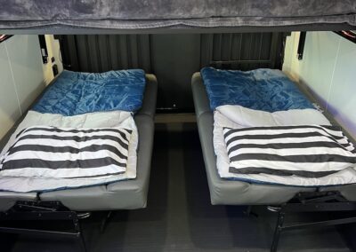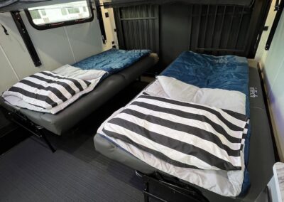 - (2) 76″ Wall Mount Sofas that Convert to Sleeping Area