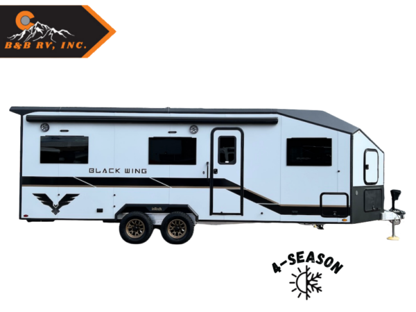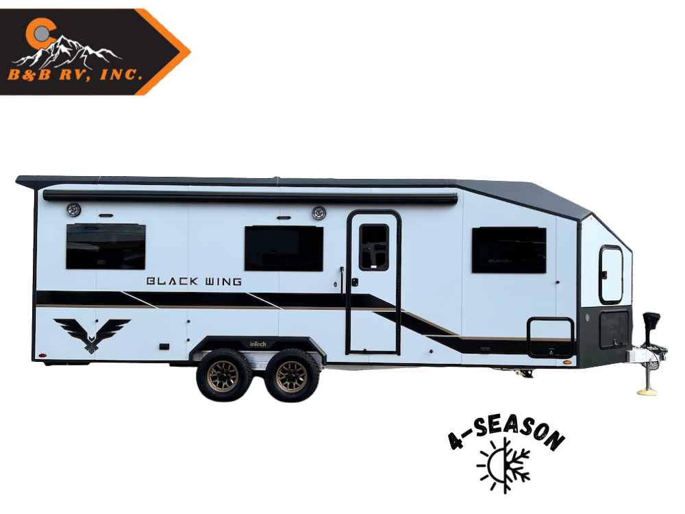 The inTech Black Wing 830 X is built for adventure, offering unmatched durability with its all-aluminum frame and rugged design. Engineered to withstand the harshest conditions, its reinforced chassis, all-terrain suspension and oversized off-road tires ensure you can explore uncharted terrains with confidence. Weather-sealed and purpose-built, the Black Wing is designed to protect your gear and keep you going, no matter the elements. With its expansive interior, this toy hauler offers a perfect blend of living and garage space, giving you room for both relaxation and adventure. If you’re searching for a toy hauler that offers it all—strength, durability, and versatility—look no further than the inTech Black Wing!
