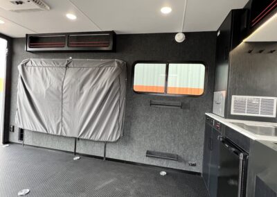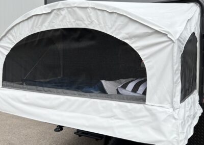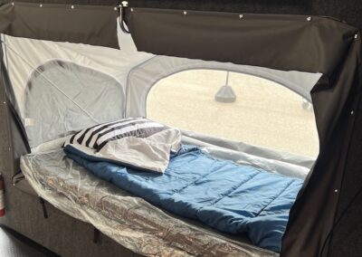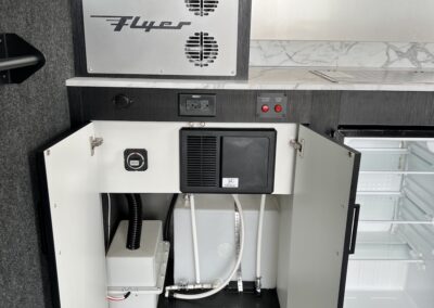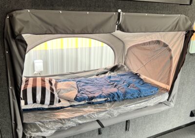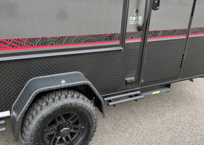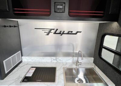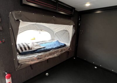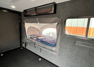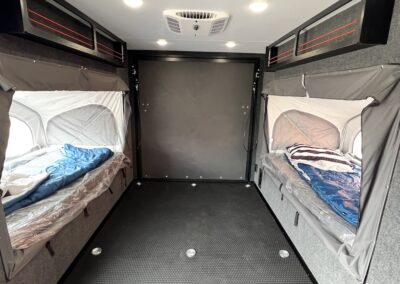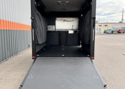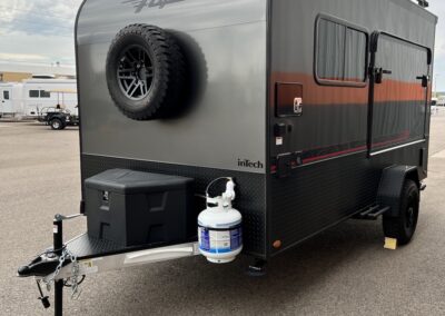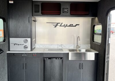 The inTech Flyer Discover is a toy hauler that features a standard roadside tip-out and we have it upgraded with an additional curbside tip-out, providing unparalleled flexibility for your adventures. With (9) 500 lb. tie-downs and an oversized garage, you can haul all your toys up to a side-by-side, ensuring you never have to leave your favorite equipment behind. The robust loading ramp, rated at 2,200 lbs., makes loading and unloading effortless, whether you’re bringing in ATVs or motorcycles. You will still have plenty of room for everyone to be comfortable with the thoughtfully designed interior kitchen and dual tip-out beds, maximizing your living space. It is designed to fit a side-by-side vehicle. The interior is roomy, extremely functional, and built for rugged use, making it the perfect basecamp for your outdoor pursuits.