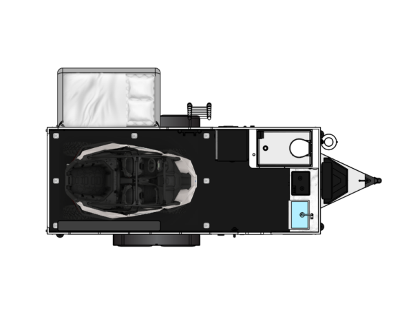 The Forge has nine 500lb. tie downs to keep your toys in place. The spacious garage area serves a dual purpose as a sleeping space, featuring a standard roadside tip-out and a sleeper sofa.