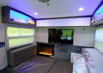 The 2026 inTech Luna Rover comes well-equipped with standard features designed for comfort and convenience, including an efficient 8K BTU A/C to keep the interior cool on warmer days, comfortable Futon Mattresses ensuring restful sleep, durable and stylish Infinity Woven Flooring, a practical 2-burner cooktop for meal preparation, a large farmhouse-style sink complemented by a sleek brushed nickel faucet, and a MaxxAir Vent Fan for excellent ventilation.