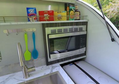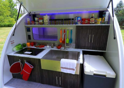 The inTech Luna Rover is a slightly larger tear-drop that will keep you comfortable off the road. One of the Luna’s standout features is its impressive portability. With a remarkably low dry weight of only 1,850 lbs, this trailer remains accessible to a wide range of vehicles, from many light SUVs to even some sedans, opening up a world of potential destinations without the need for a heavy-duty tow vehicle.