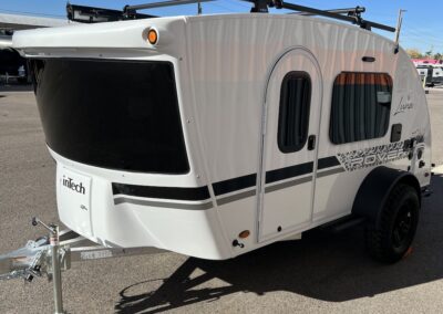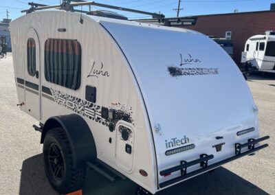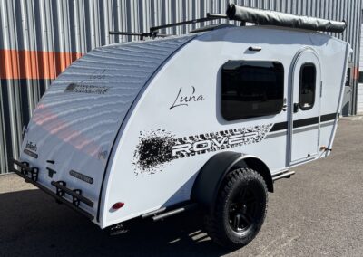 The inTech Luna Rover is a slightly larger tear-drop that will keep you comfortable off the road. One of the Luna’s standout features is its impressive portability. With a remarkably low dry weight of only 1,850 lbs, this trailer remains accessible to a wide range of vehicles, from many light SUVs to even some sedans, opening up a world of potential destinations without the need for a heavy-duty tow vehicle. Furthermore, the inclusion of the highly capable Rover Package significantly enhances its off-road prowess. This crucial upgrade provides an extra 2 inches of lift for improved ground clearance and equips the trailer with robust off-road tires, empowering you to confidently navigate towards that secluded favorite campsite or venture out to discover entirely new and breathtaking locations to fully immerse yourself in the great outdoors.
