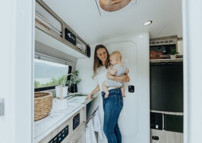 The inTech Sol Dawn features an inviting front dinette with seating for up to six adults directly in front of the impressive panoramic windshield, keeping you connected to the great outdoors!