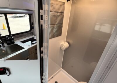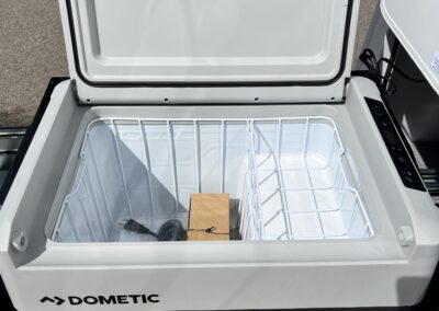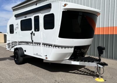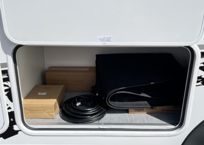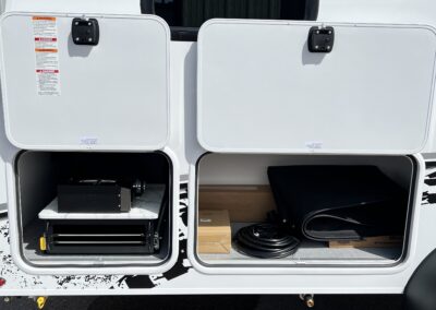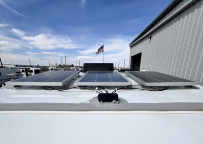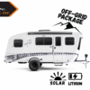 This model features the Off-Grid Package with 300 watts of solar, mixed with an MPPT charger controller, 200 amp hrs of lithium batteries, and a 2,000-watt inverter.