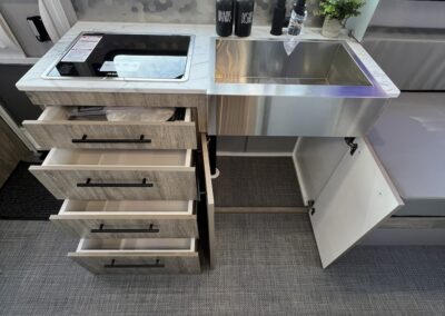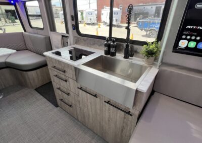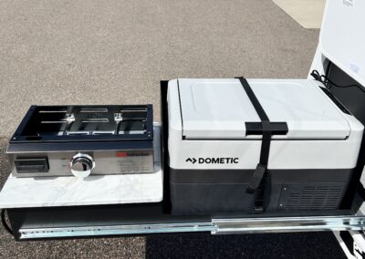 - Slide-out exterior Kitchen with Griddle and 12v Refrigerator