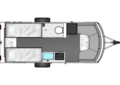 This model includes the Off-Grid package, is spacious enough for up to 4 adults, and is luxurious enough to feel like a true “home on the road”. Sol Dusk is unlike any other camper, featuring a massive 3-ply laminated glass panoramic front windshield. The slide-out exterior kitchen doubles your cooking space, and the aluminum welded cage and frame make it sturdy enough to take you farther.