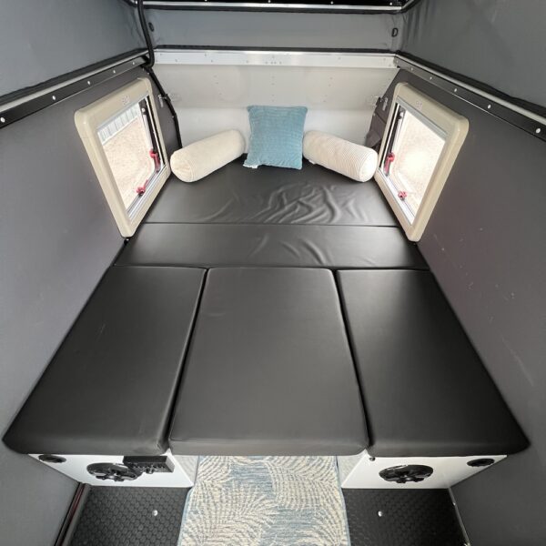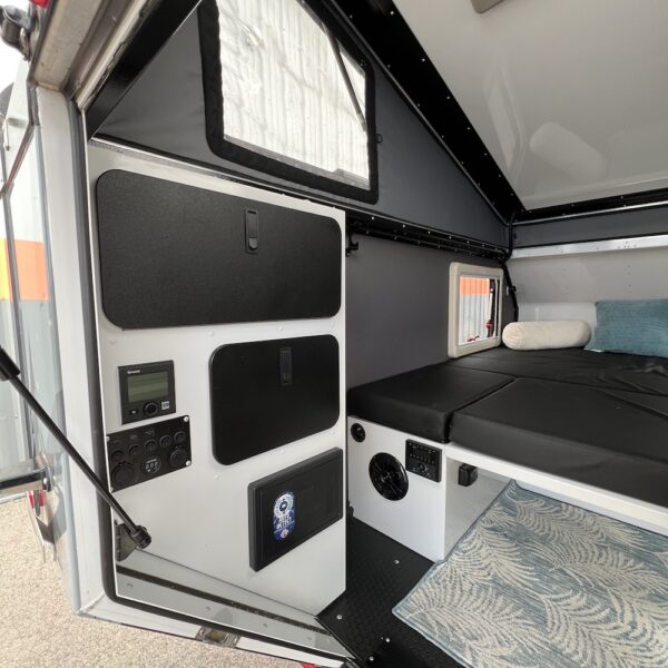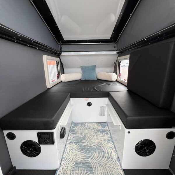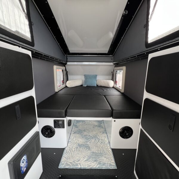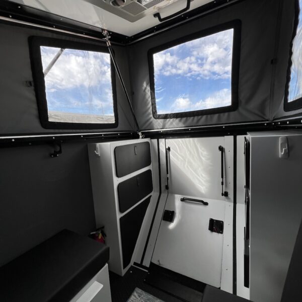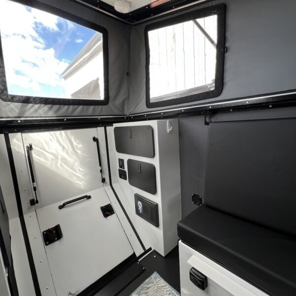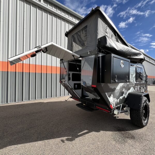 The 2024 Mission Overland Summit is engineered for true off-road freedom, blending rugged, go-anywhere capability with the comfort and amenities you need to stay out longer. Built with an aluminum frame and composite materials—no wood to rot—making it light enough for many mid-sized SUVs to tow, yet strong enough for the roughest terrain. The insulated clam-shell pop-up roof provides 6’4″ of standing room and a cozy Queen-sized bed. Stay comfortable with a combined TRUMA Hot Water Heater & Furnace system and fully insulated walls, ceiling, and floor.