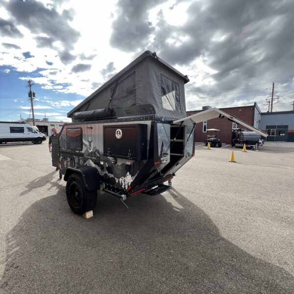 This all-season, composite-built off-road trailer is fully equipped with a pop-up roof for headroom and a gourmet exterior kitchen.