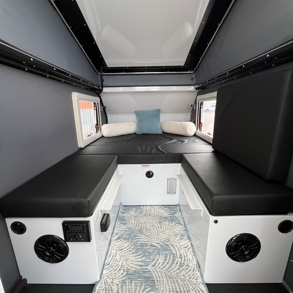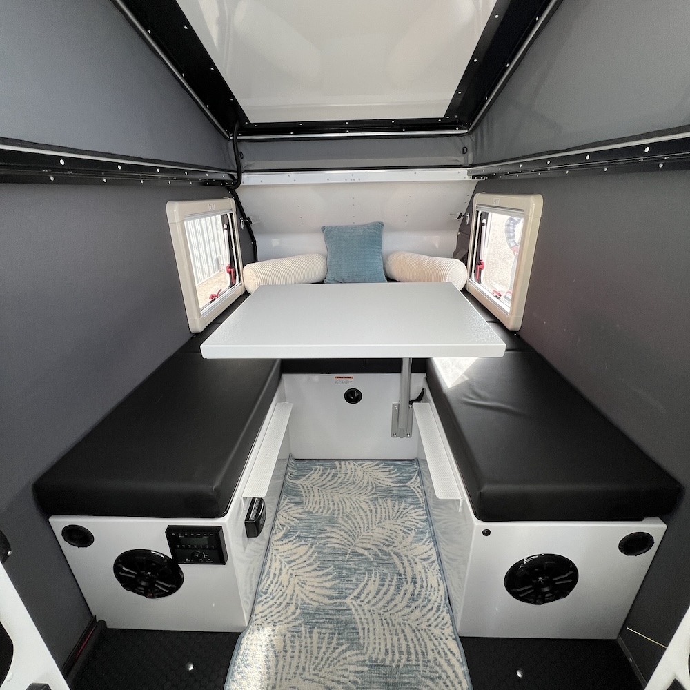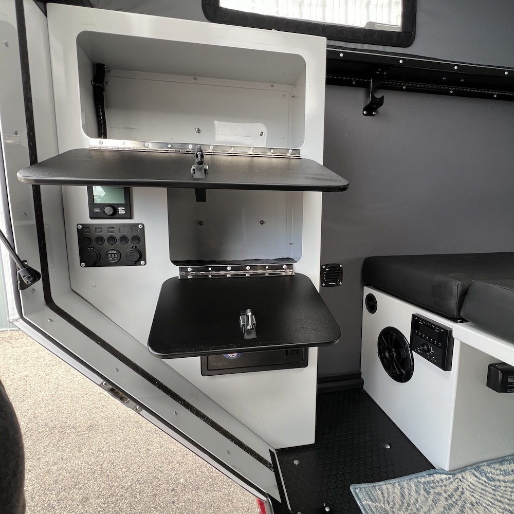 This all-season, composite-built off-road trailer is fully equipped with a pop-up roof for headroom and a gourmet exterior kitchen.