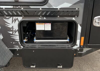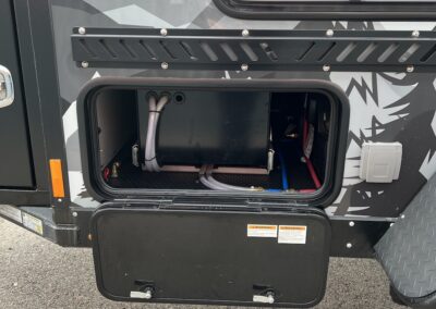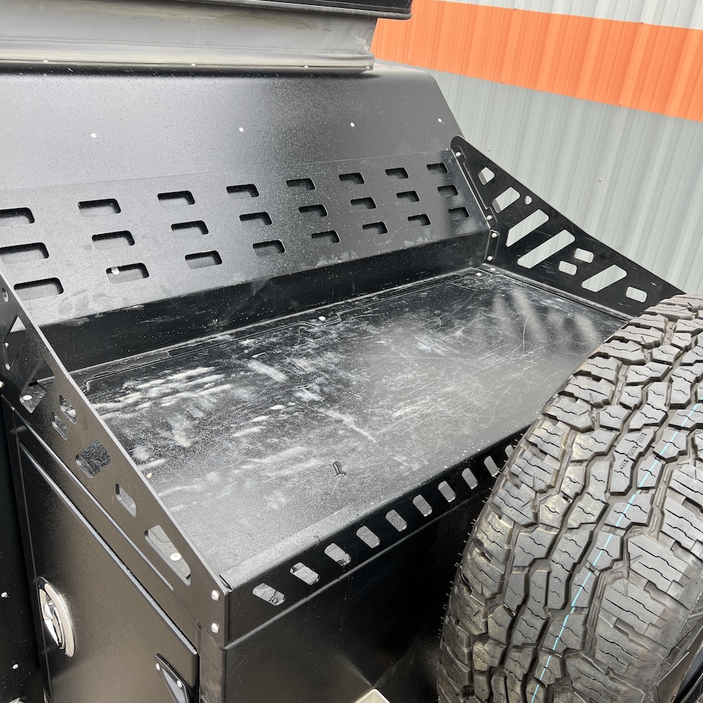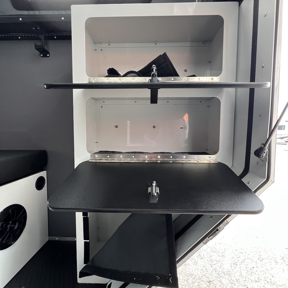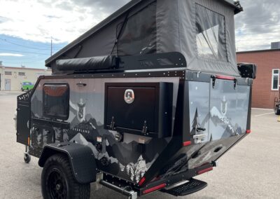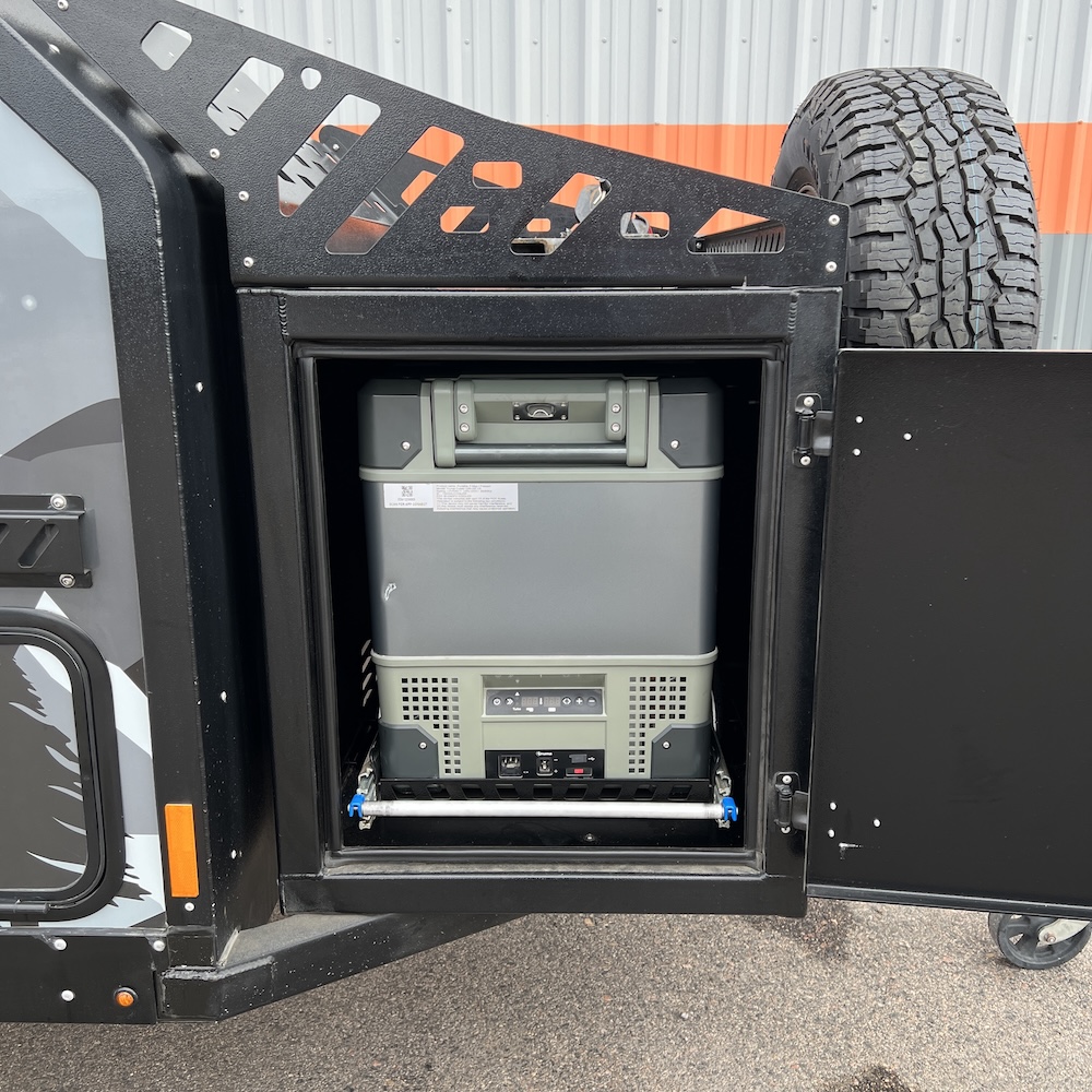 This all-season, composite-built off-road trailer is fully equipped with a pop-up roof for headroom and a gourmet exterior kitchen.