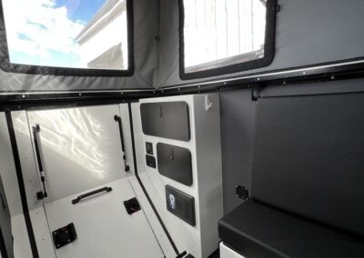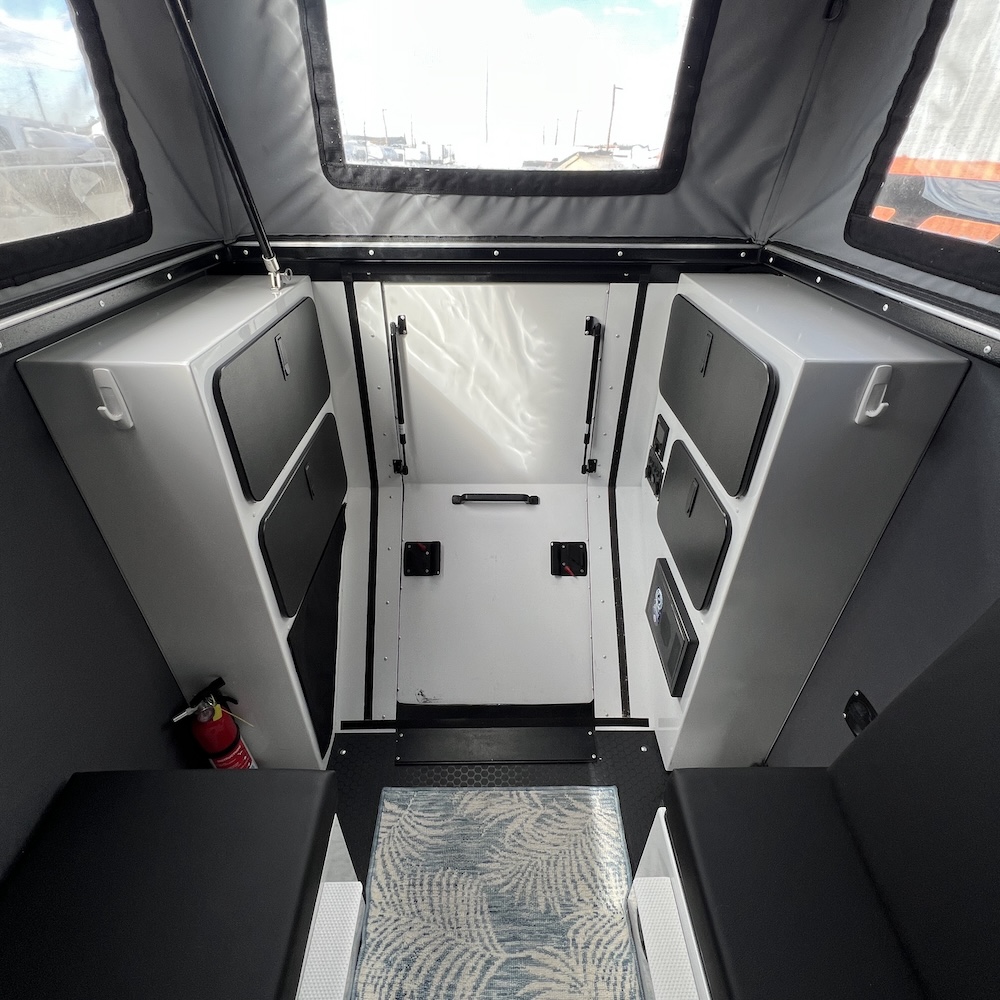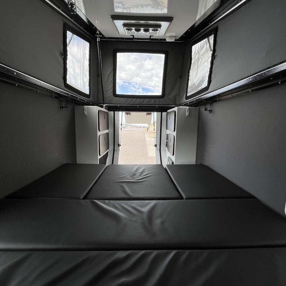 The 2024 Mission Overland Summit is engineered for true off-road freedom, blending rugged, go-anywhere capability with the comfort and amenities you need to stay out longer. Built with an aluminum frame and composite materials—no wood to rot—making it light enough for many mid-sized SUVs to tow, yet strong enough for the roughest terrain. The insulated clam-shell pop-up roof provides 6’4″ of standing room and a cozy Queen-sized bed. Stay comfortable with a combined TRUMA Hot Water Heater & Furnace system and fully insulated walls, ceiling, and floor.