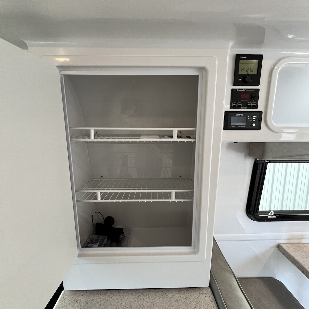 - Plumbing, Holding Tanks and Drain Pipes enclosed between shells with heat to diminish freezing