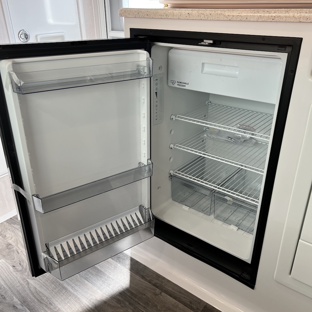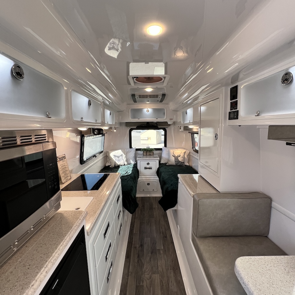 This Oliver is four-season ready with off-grid capability allowing you the freedom to boondock without compromising luxury. Silver birch interior color.