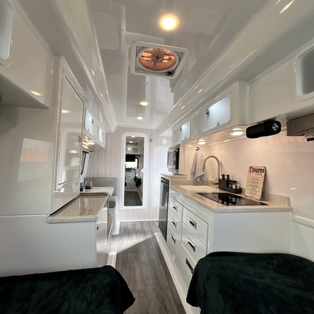- Quad Gas Shocks on Dual Dexter Leaf Spring Nev-R-Lube Axles with “Nev-R-Adjust” 12″ Electric Brakes for exceptional control and braking