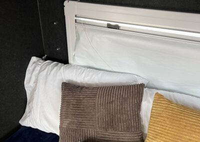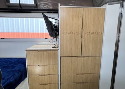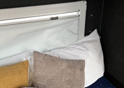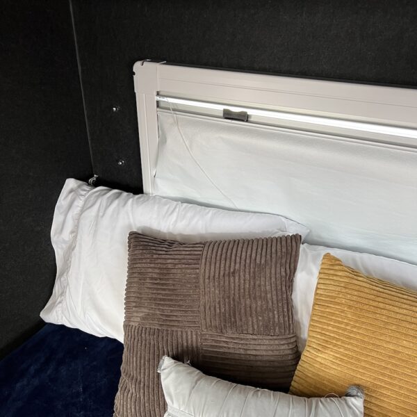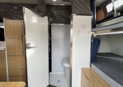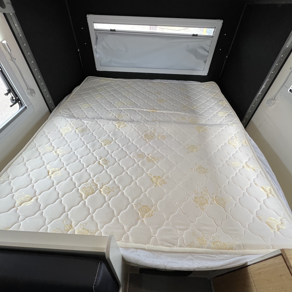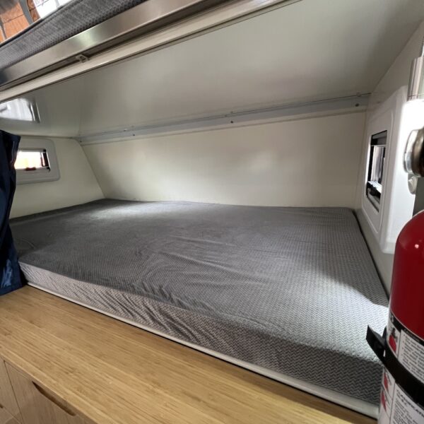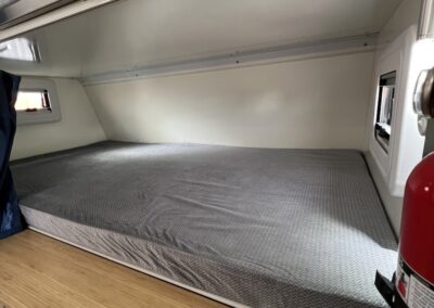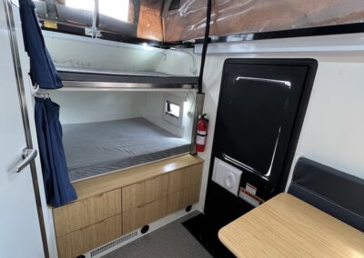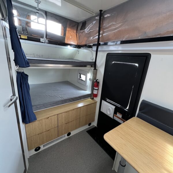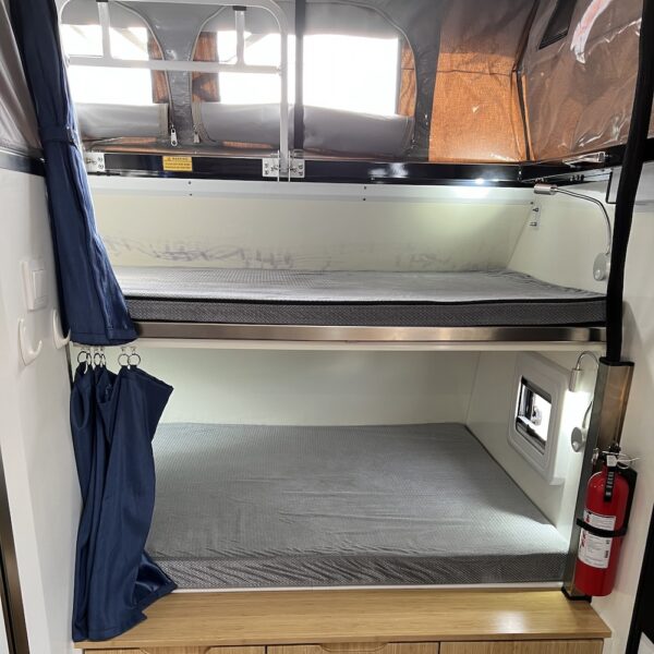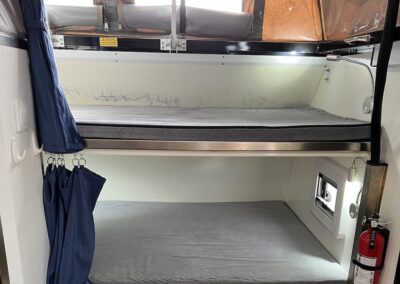 - Two bunks with mattresses – Top bunk: 80” x 33”, Lower bunk: 80” x 45”