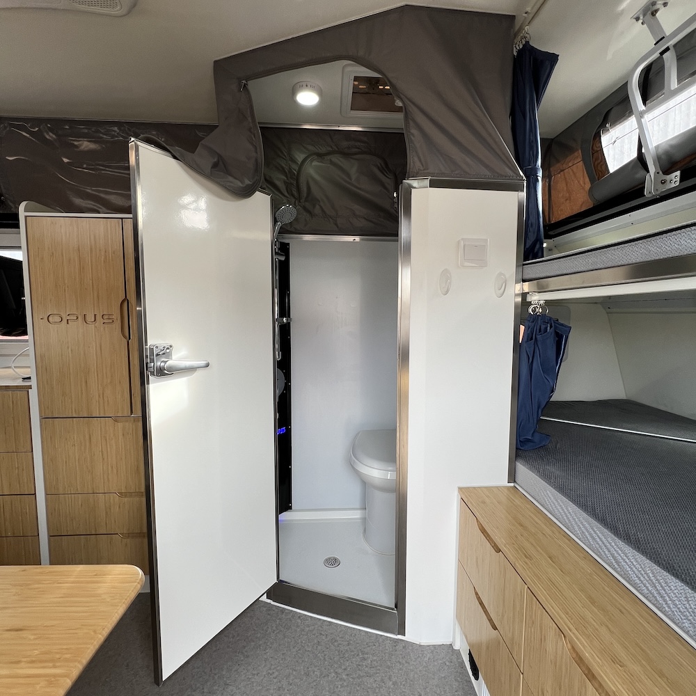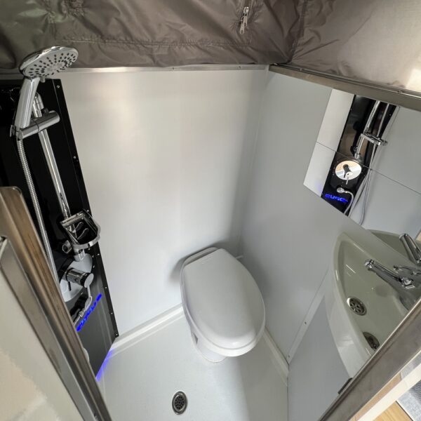 - Sink and Shower w/ On-demand Hot Water, Flush Toilet