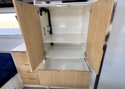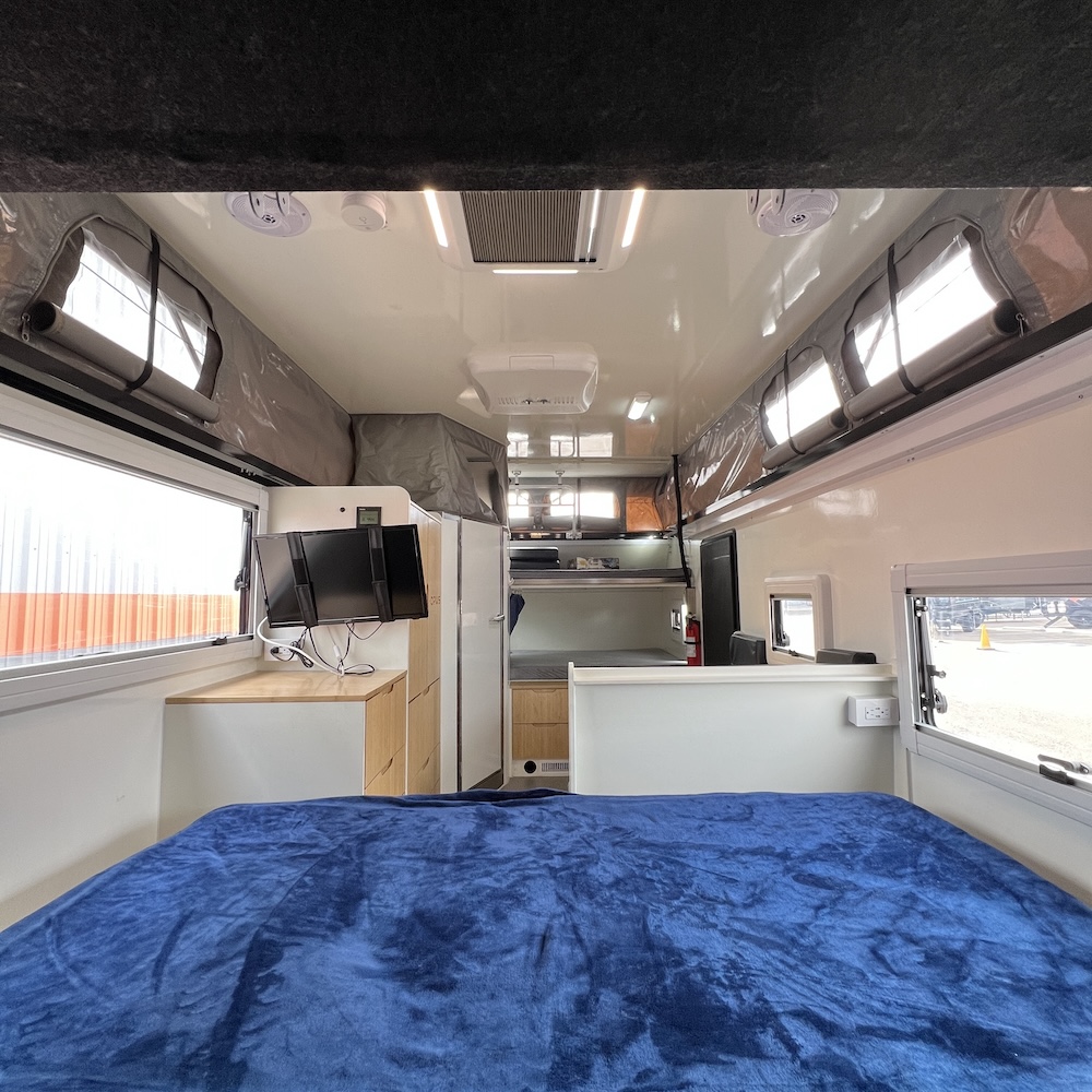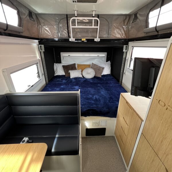 - Trail-Dominating Chassis: Equipped with the re-engineered suspension, this caravan handles rough tracks and corrugated roads like a champion, soaking up the impact to protect your gear.