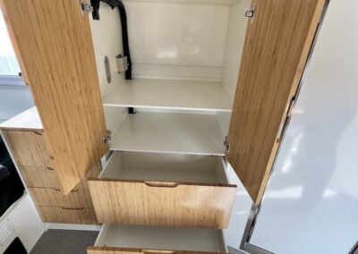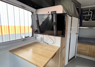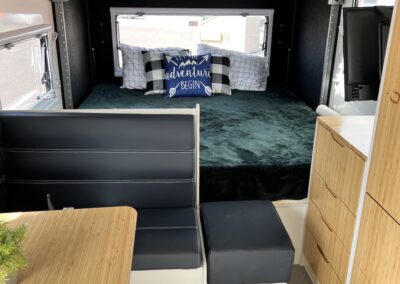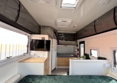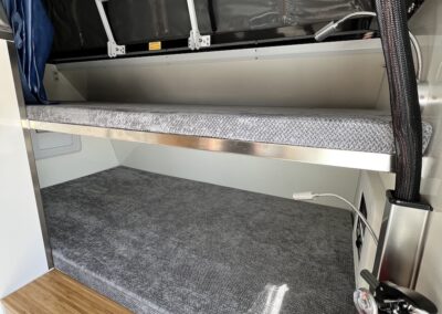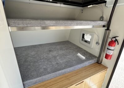- Two bunks with mattresses – Top bunk: 80” x 33”, Lower bunk: 80” x 45”