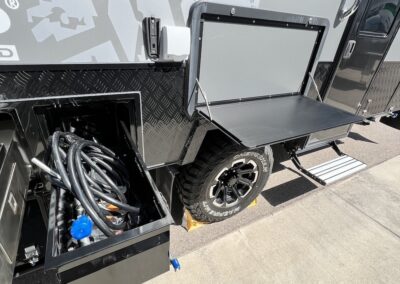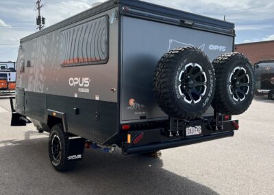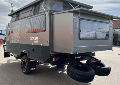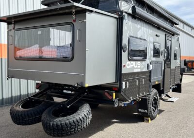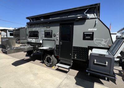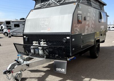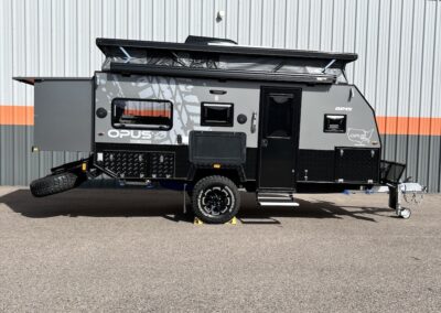 This 2024 OPUS OP15 Caravan is lightly used and FULLY LOADED with a 300-watt solar system mounted on the roof, 405ah of lithium batteries, 63 gallons of FRESH water capacity and 2-4 days of built-in battery life. The re-engineered suspension adds impact durability in the toughest tow conditions.