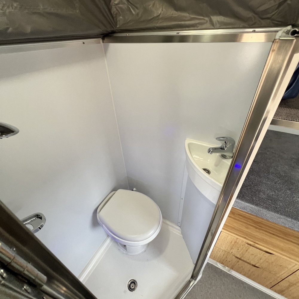 - Sink and Shower w/ on-demand hot water, Flush Toilet